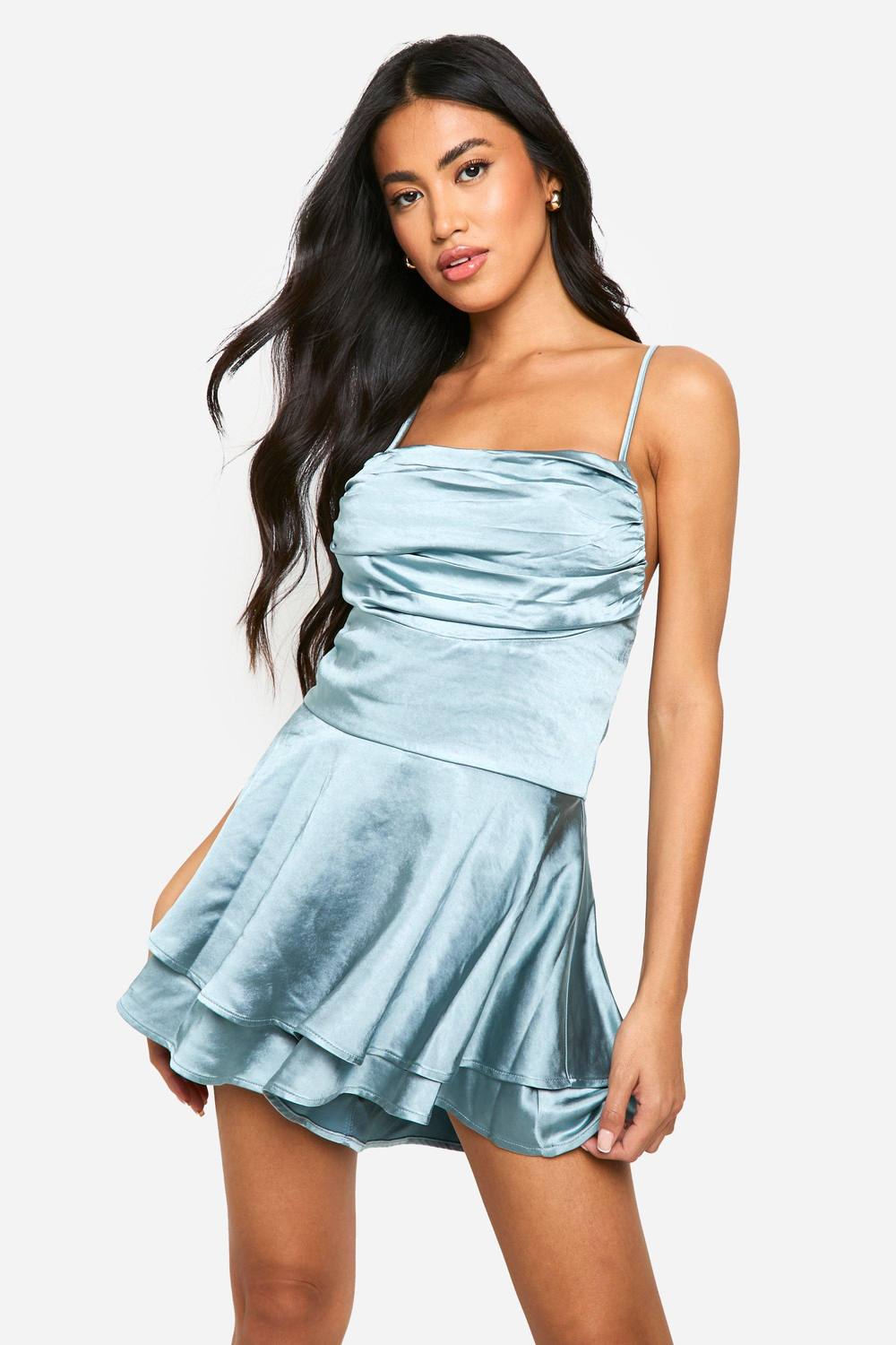 Glanzende satijnstof voor een glamoureuze uitstraling Vierkante halslijn met dunne verstelbare bandjes Gerafelde buste voor een flatterende pasvorm Gelaagde, zwierige rok met speelse beweging Kruisrugontwerp voor extra allure Maak een statement tijdens je volgende avondje uit met deze oogverblindende satijnen playsuit. De vierkante halslijn en het gerafelde buste vormen een flatterend silhouet, terwijl de gelaagde rok een speelse touch toevoegt. Perfect om de nacht door te dansen, combineert deze playsuit moeiteloos comfort en stijl. Combineer met bandjeshakken en opvallende oorbellen voor een look die alle ogen trekt in de club. Voor een meer casual uitstraling kun je er een leren jasje en enkellaarsjes bij dragen. Het veelzijdige ontwerp maakt het ideaal voor diverse avondgelegenheden, van cocktails met vriendinnen tot een romantische dinerafspraak. Het kruisrugdetail voegt een onverwachte twist toe, zodat je gegarandeerd opvalt in de menigte. Omarm je zelfvertrouwen en laat deze playsuit je favoriet worden voor onvergetelijke avonden uit. boohoo Dames Satijn bandjes playsuit | Blue | Maat: 38