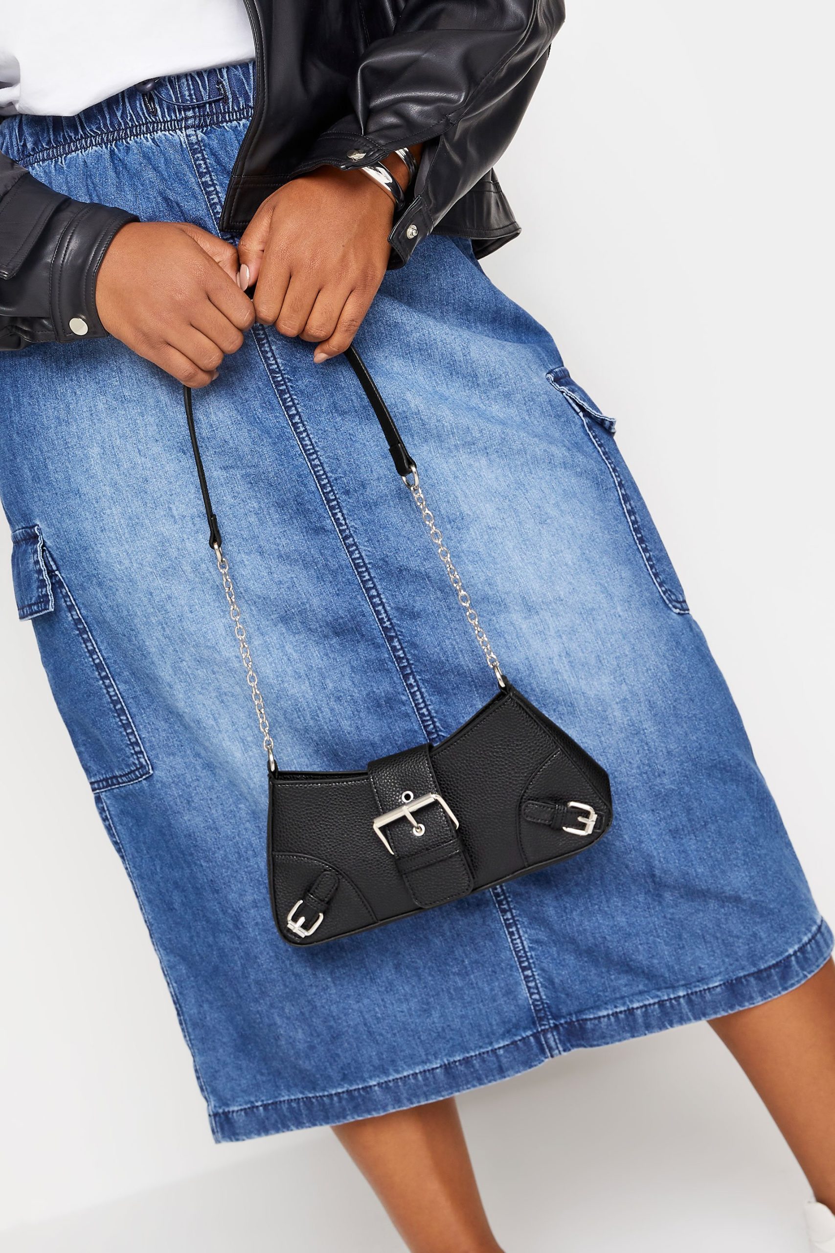 Home » Dames » Tassen » Schoudertassen » Schoudertas Met Drievoudige Gesp En Kettinghengsel In Zwart