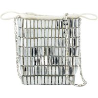 Deze mini crossbody tas van Self-Portrait betovert met zijn opvallende reflecterende metalen buitenkant, benadrukt door een rasterachtig patroon van spiegelpanelen. De zachte binnenvoering biedt een luxueuze uitstraling, terwijl de delicate ketting schouderband zorgt voor moeiteloos dragen.- Reflecterende metalen buitenkant- Rasterachtig patroon van spiegelpanelen- Zachte binnenvoering- Delicate ketting schouderband voor gemakkelijk dragen