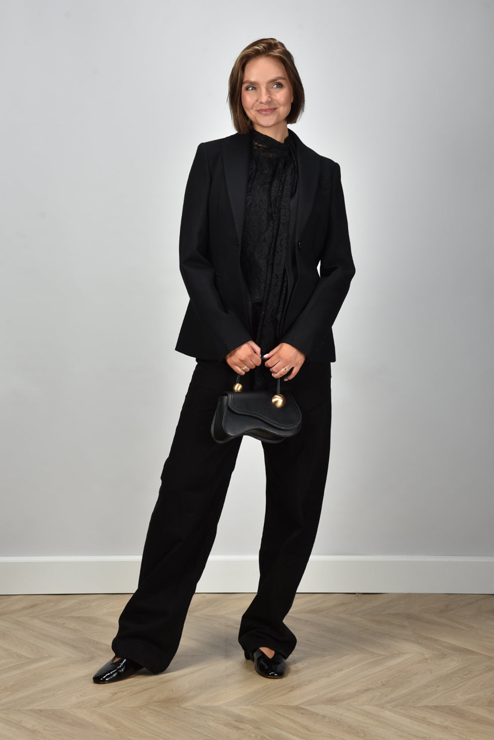 De blazer S5WI04 Y69 0 van Semicouture is zo’n stuk dat meteen sterk staat. Het ontwerp is slank gesneden en benadrukt de taille op subtiele wijze. De brede, glanzende revers geven het zwarte wolmengsel iets bijzonders zonder dat het te opvallend wordt. De knoopsluiting is eenvoudig gehouden, wat het geheel een moderne uitstraling geeft. De stof met wol en een vleugje elastaan voelt soepel aan en draagt mooi door de dag heen. Combineer deze Semicouture blazer met een Cult Gaia crossbody Kazia in black voor een stijlvolle stoere combinatie.