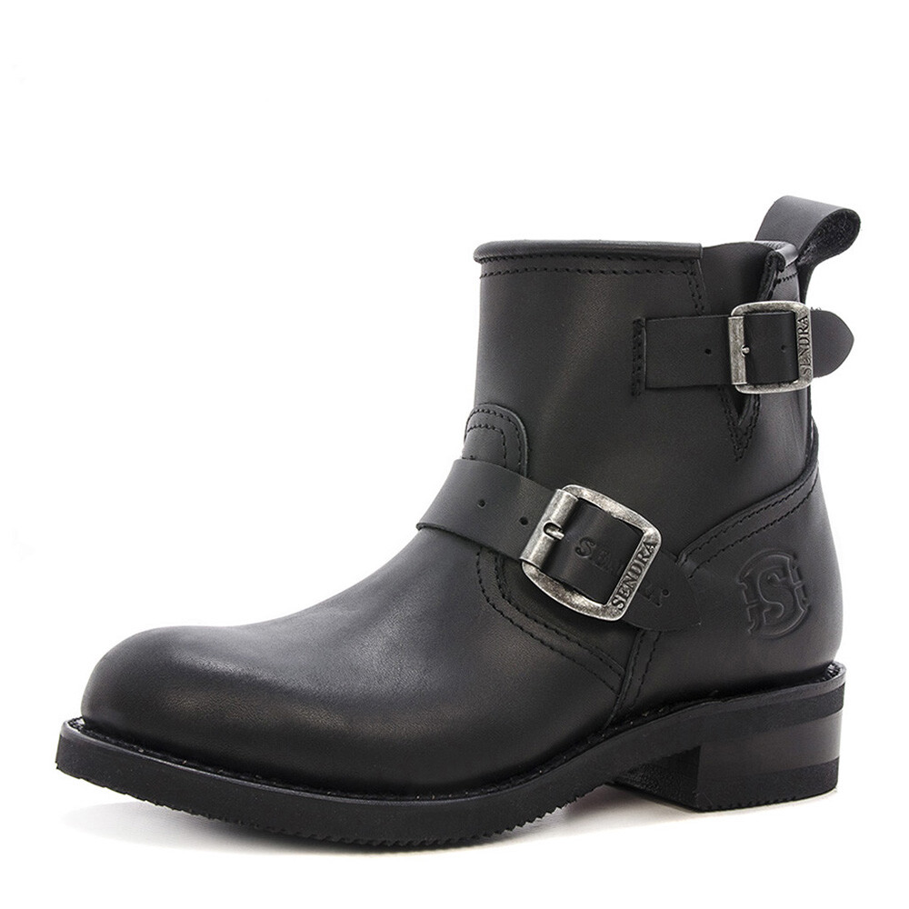 Stoere enkelboots van het merk Sendra, model 2976 uitgevoerd in zwart leer en voorzien van verstelbare biker gespen. De Sendra Laarzen worden met de hand gemaakt door ervaren vakmensen, waarbij alleen de allerbeste leersoorten worden gebruikt. Opvallend aan deze is laarzen is het gegraveerde Sendra merklogo in de gespen. De hiel en verstelbare bandjes zijn voorzien van een merkdruk. Absoluut een heerlijke laars die gemakkelijk is te combineren en niet mag ontbreken in jouw schoenencollectie.
