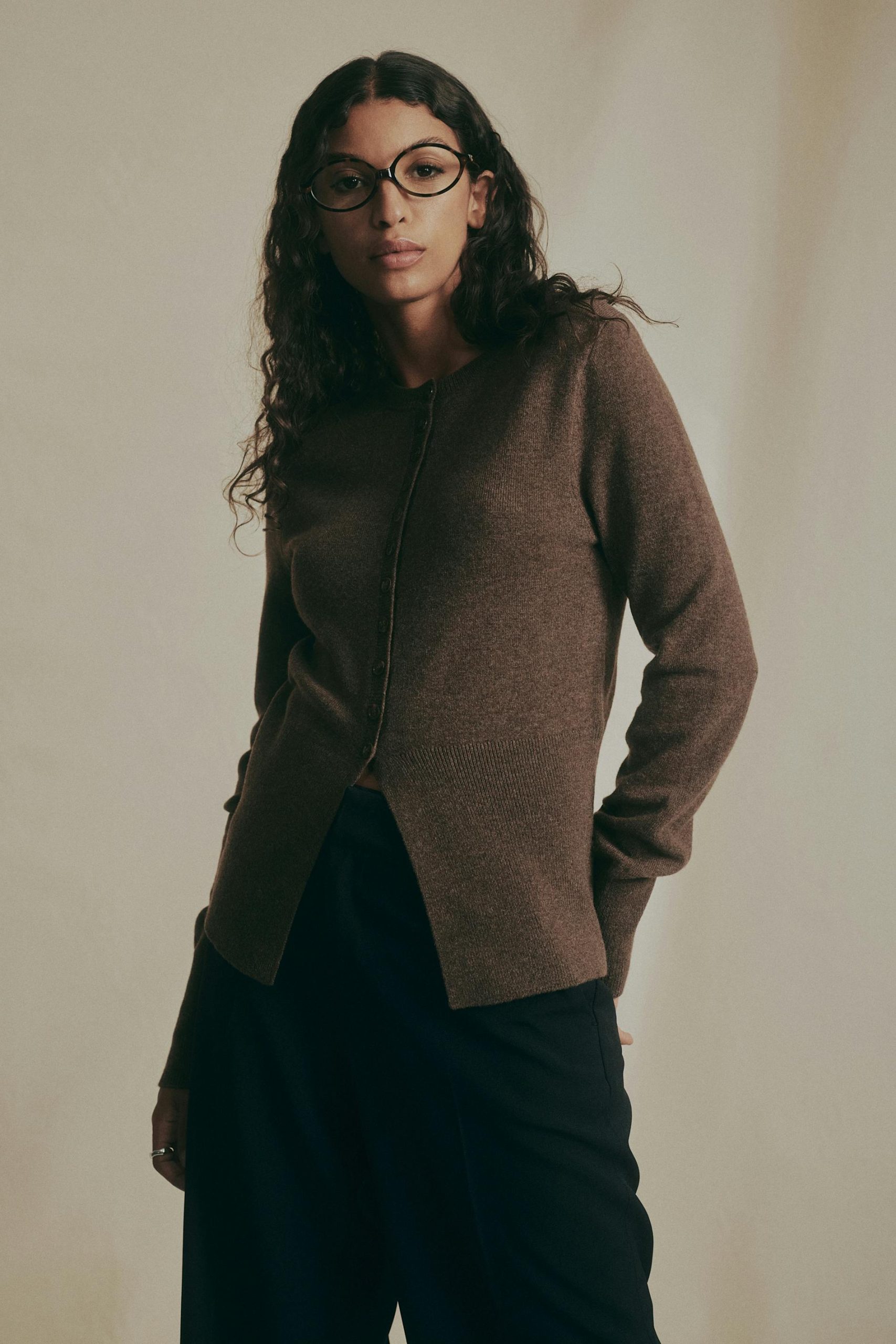 Shaped knitted wool cardigan