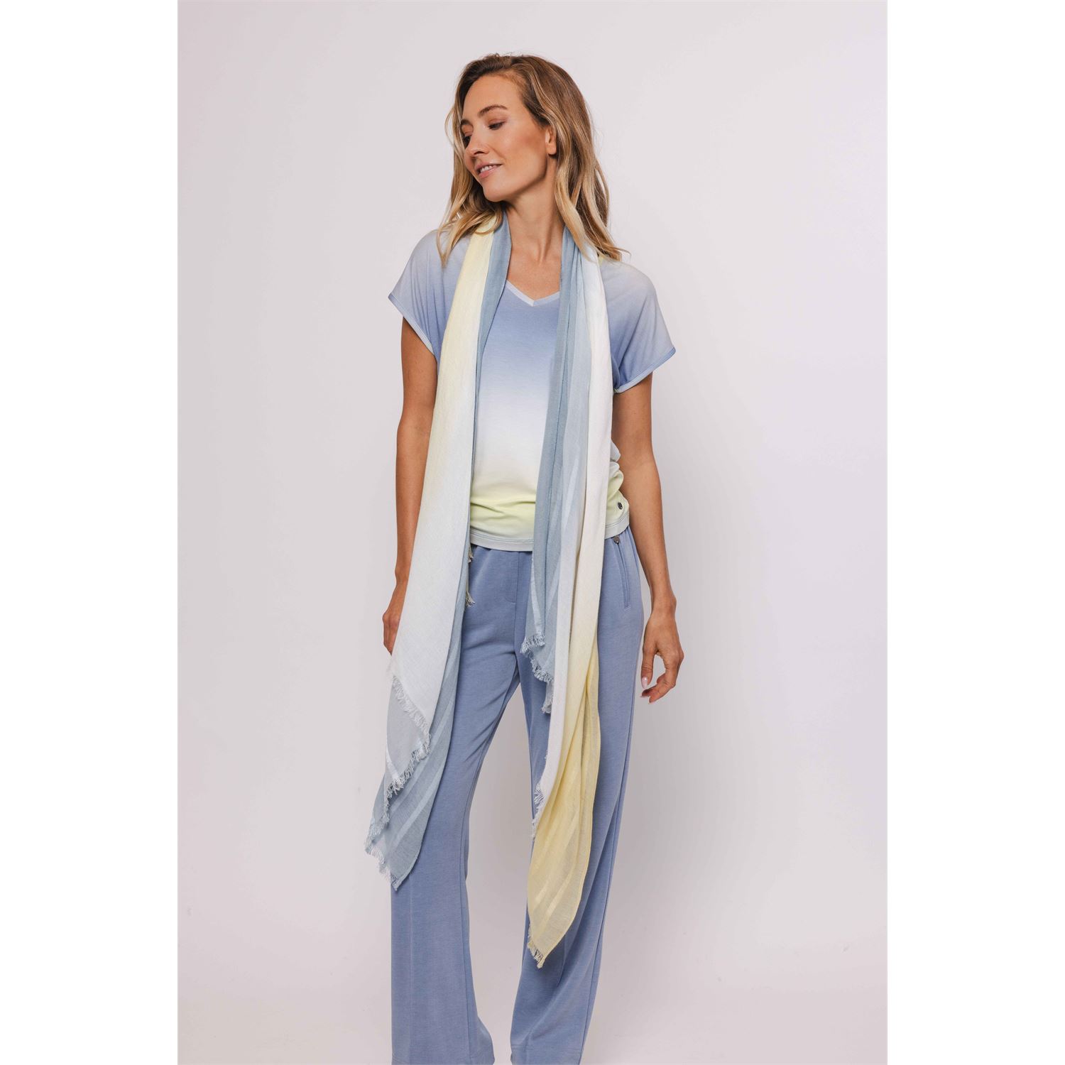 Luchtige sjaal in viscosekwaliteit, met ingeweven satijnen stroken en ombre strepenprint.