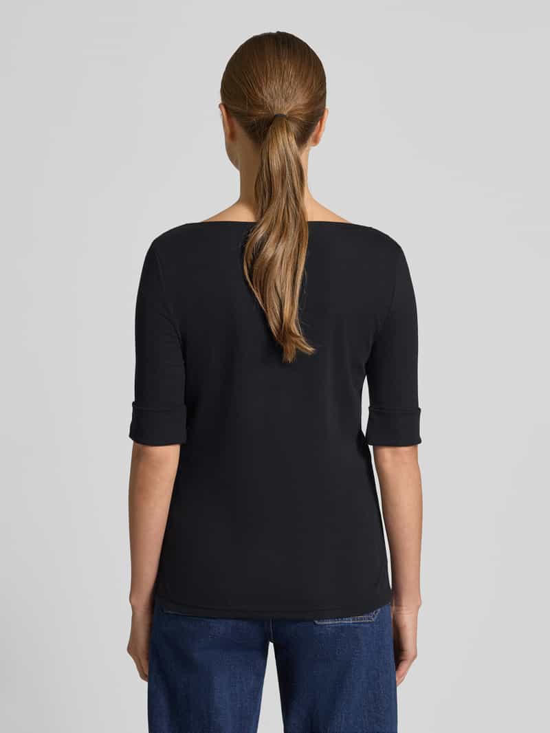 Damesshirt van Lauren Ralph Lauren;Mix van katoen en elastaan;Getailleerd model;Boothals;Korte mouw met vaste omslag;Korte zijsplitten;Ruglengte bij maat S: 61 cm