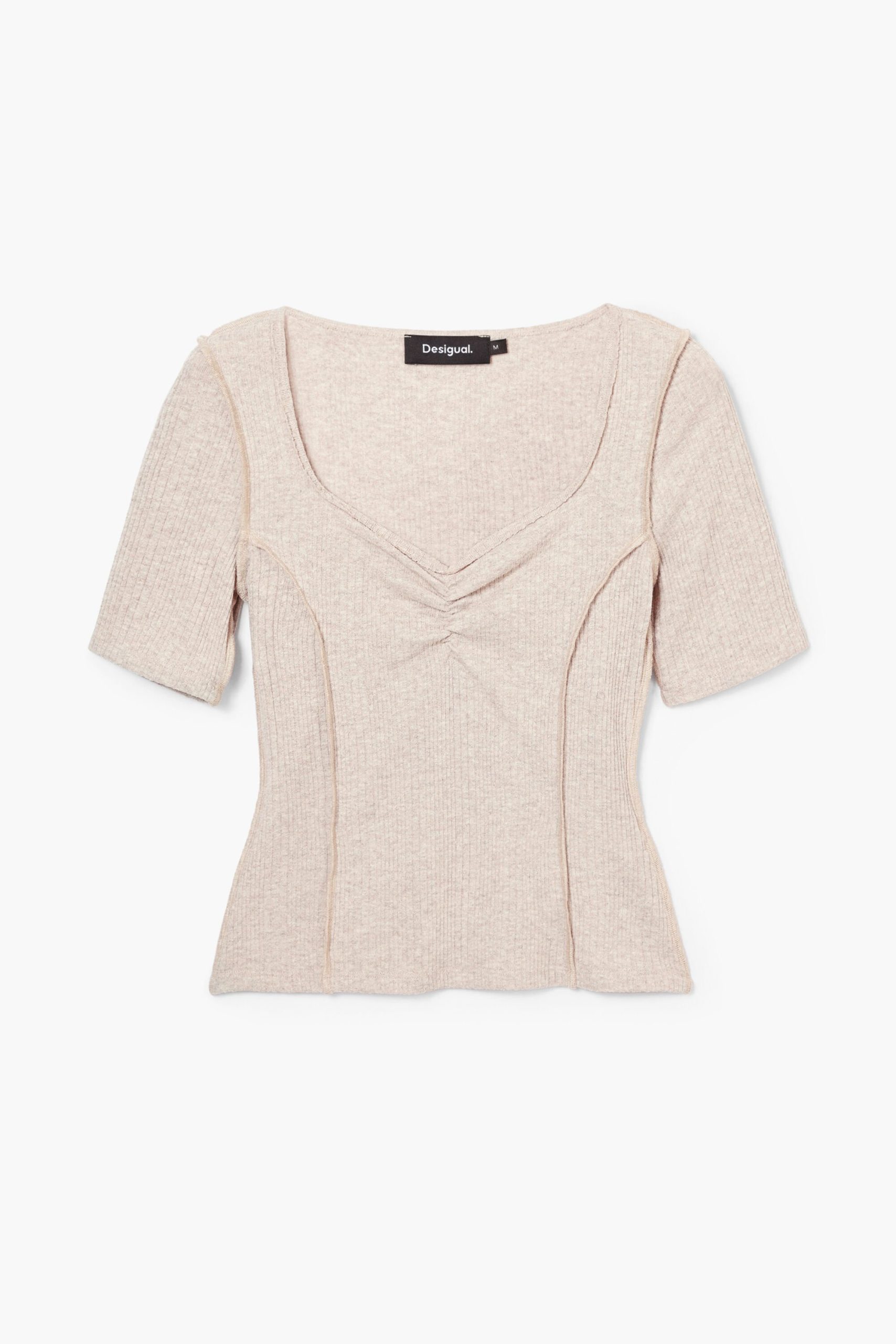 Korte mouw T-shirt met ronde hals en geplooid detail bij de halslijn