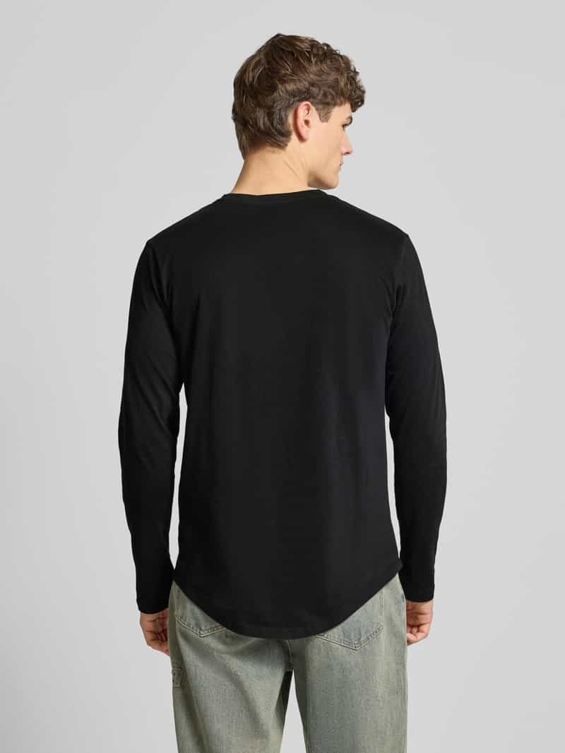 Herenshirt met lange mouwen van JACK & JONES;Puur biologisch katoen;Recht model;Ronde hals;Geborduurd logo;Ruglengte bij maat M: 77 cm;Mouwlengte bij maat M: 62 cm