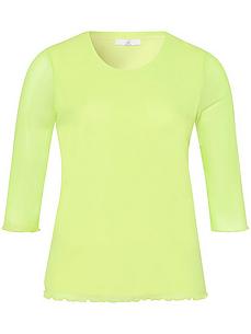 Shirt met ronde hals van EMILIA LAY. Aansluitend model met 3/4-mouwen. Babyoverlocknaden aan mouwen en zoom. Ideaal om er iets overheen te dragen. Van transparant mesh van 90% polyester, 10% elastan met een ondoorzichtige bodyvoering van 95% viscose, 5% elastan. Lengte in maat 42 ca. 65 cm. Dit shirt met ronde hals is machinewasbaar. fijnwas tot 30°. chloorbleken niet mogelijk. koud strijken. chemische reiniging. drogen in de droger niet mogelijk. 46, 48, 50