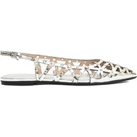 Een betoverend paar slingbacks van zilverleer, ontworpen om elke ensemble met verfijning te verheffen. De puntige neus en het open rugsilhouet worden prachtig gecontrasteerd door opvallende studdetails, wat visuele aantrekkingskracht creëert. Met een platte zool voor comfort gedurende de hele dag, schakelen deze veelzijdige schoenen moeiteloos van stijlvolle dag- naar elegante avondmode.- Zilverleer- Puntige neus- Open rugsilhouet- Studdetails- Platte zool voor comfort- Veelzijdig voor dag- en avondmodeDe vermelde maten zijn Italiaanse maten. Voor de beste pasvorm kunt u onze maattabel raadplegen.