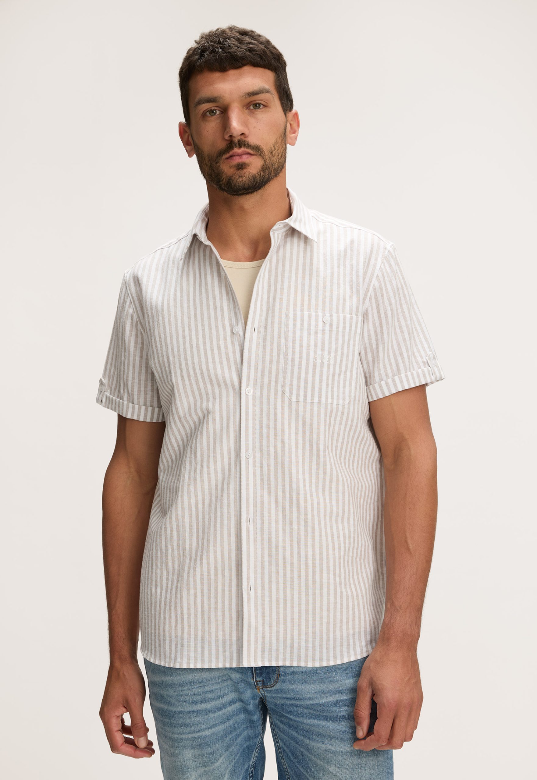 Dit is het Sanel Overhemd van het merk Silvercreek. Het overhemd heeft een regular pasvorm, een polokraag en korte mouwen met een omslag. Het item is gemaakt van een katoen en linnen blend. Verder heeft de polo een knoopsluiting en een borstzak met een knoopsluiting en het Silvercreek logo.