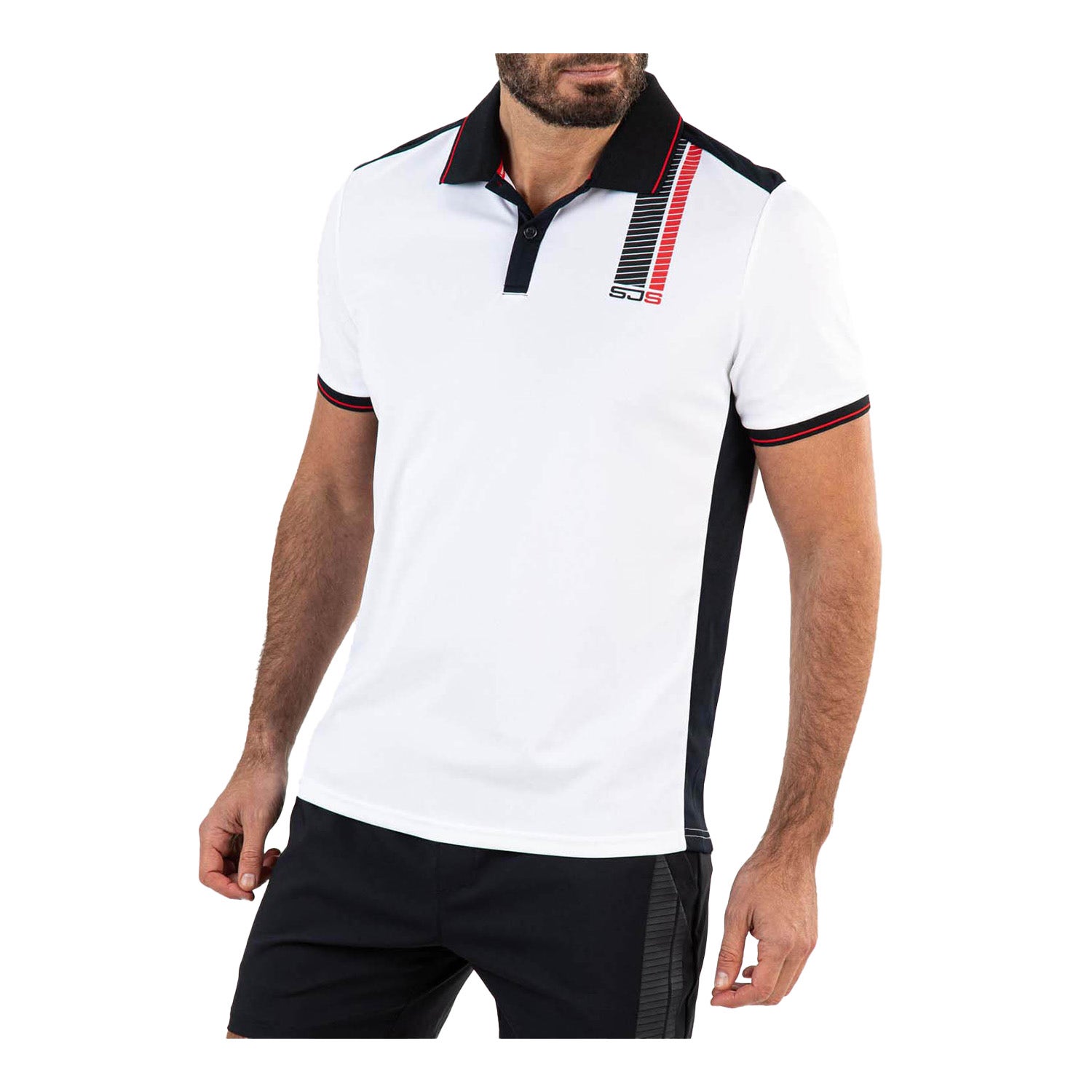 Deze donkerblauwe polo met witte bovenkant combineert dubbele mesh en jersey voor optimale ventilatie. De polokraag en mouwboorden met subtiele, contrasterende accenten voegen een verfijnde afwerking toe.