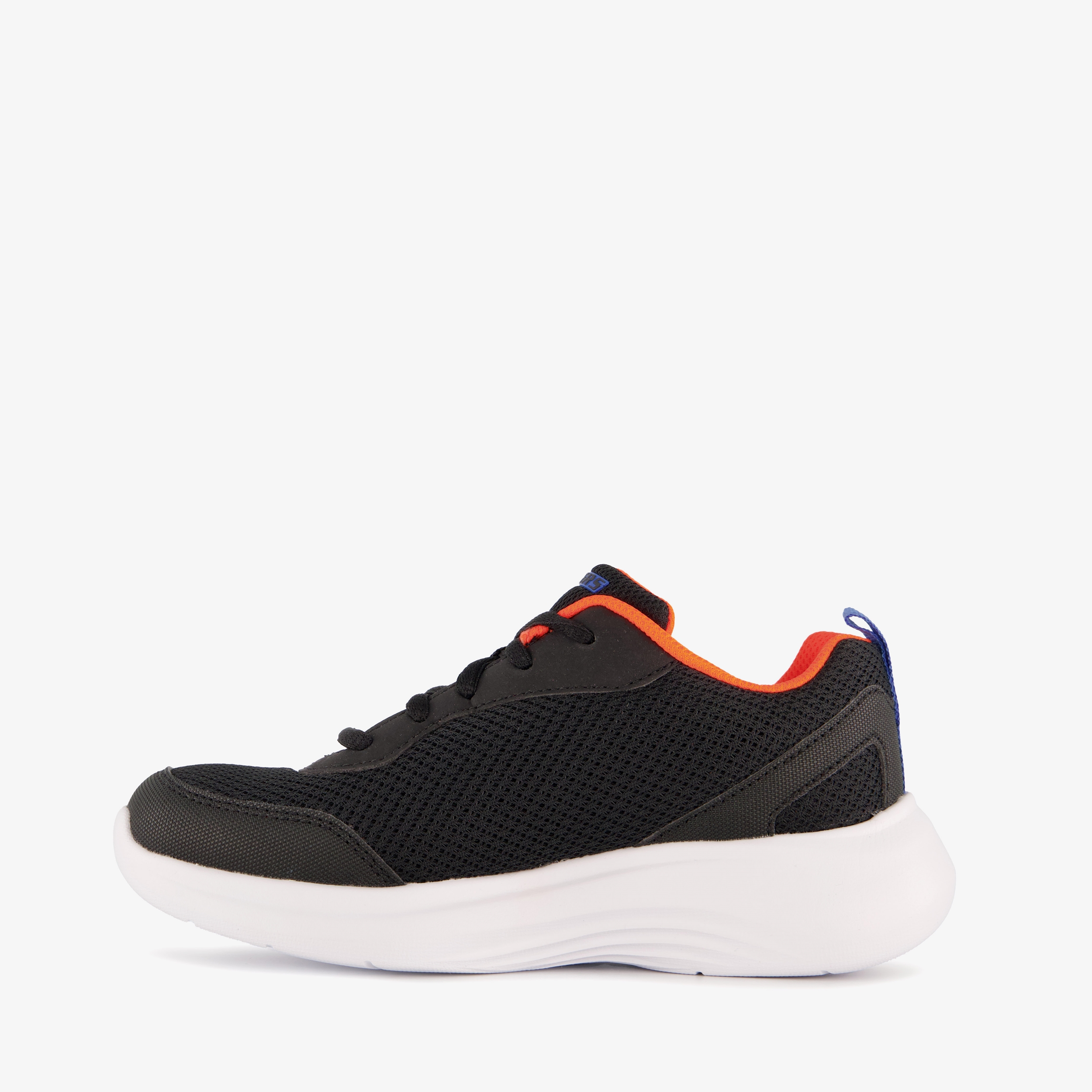 Zwarte Skechers Boys Selectors jongens sneakers. Gemaakt van mesh, een binnenwerk van textiel en een rubberen zool. De sneakers hebben een vetersluiting en vast voetbed van textiel. De sneakers hebben blauwe en oranje details.
