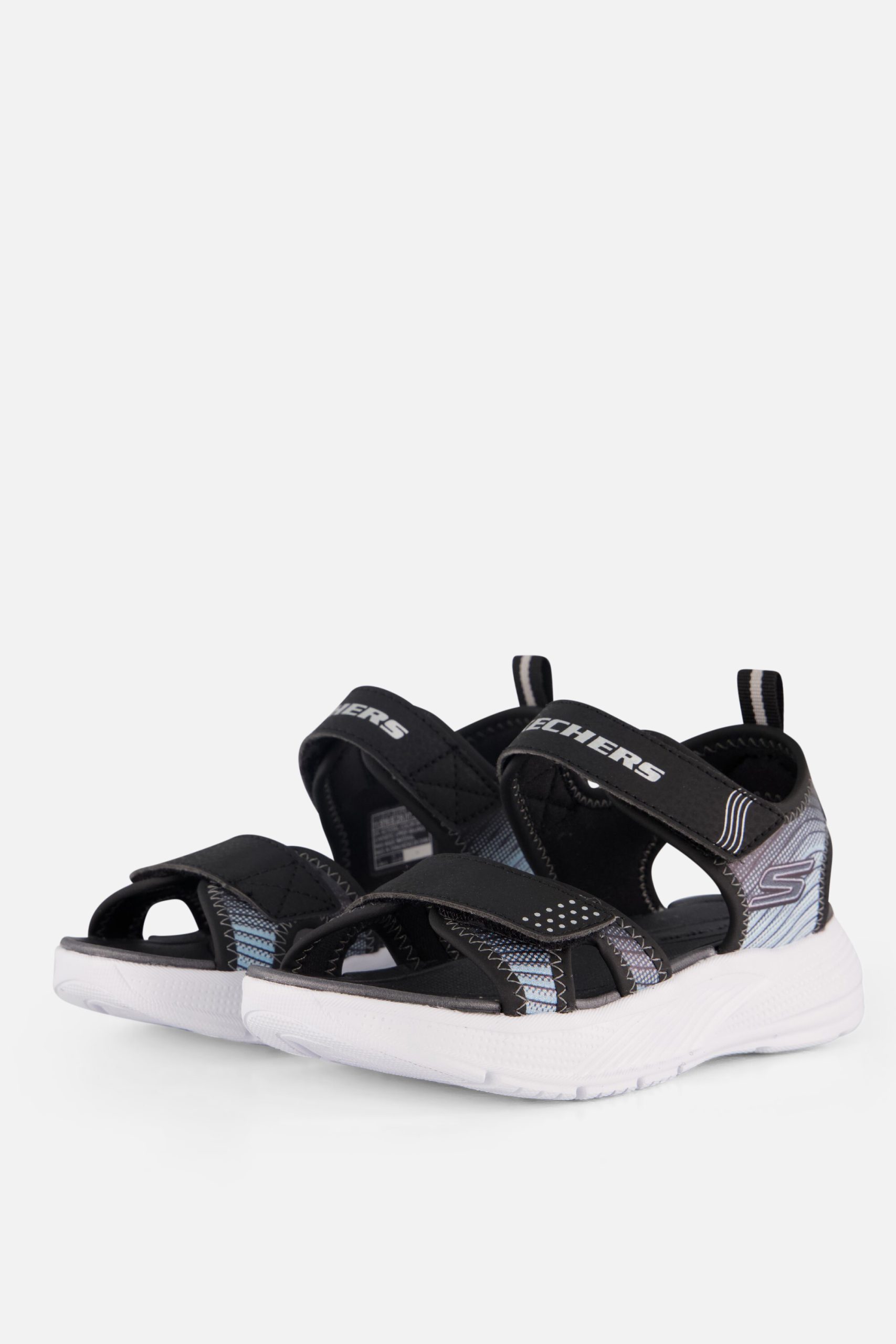 Deze Skechers Microspec Splash sandalen zijn volledig gemaakt van textiel. Voorzien van een handige klittenbandlsuiting en een comfort voetbed. De zool is gemaakt van rubber en zorgt voor grip en stabiliteit.