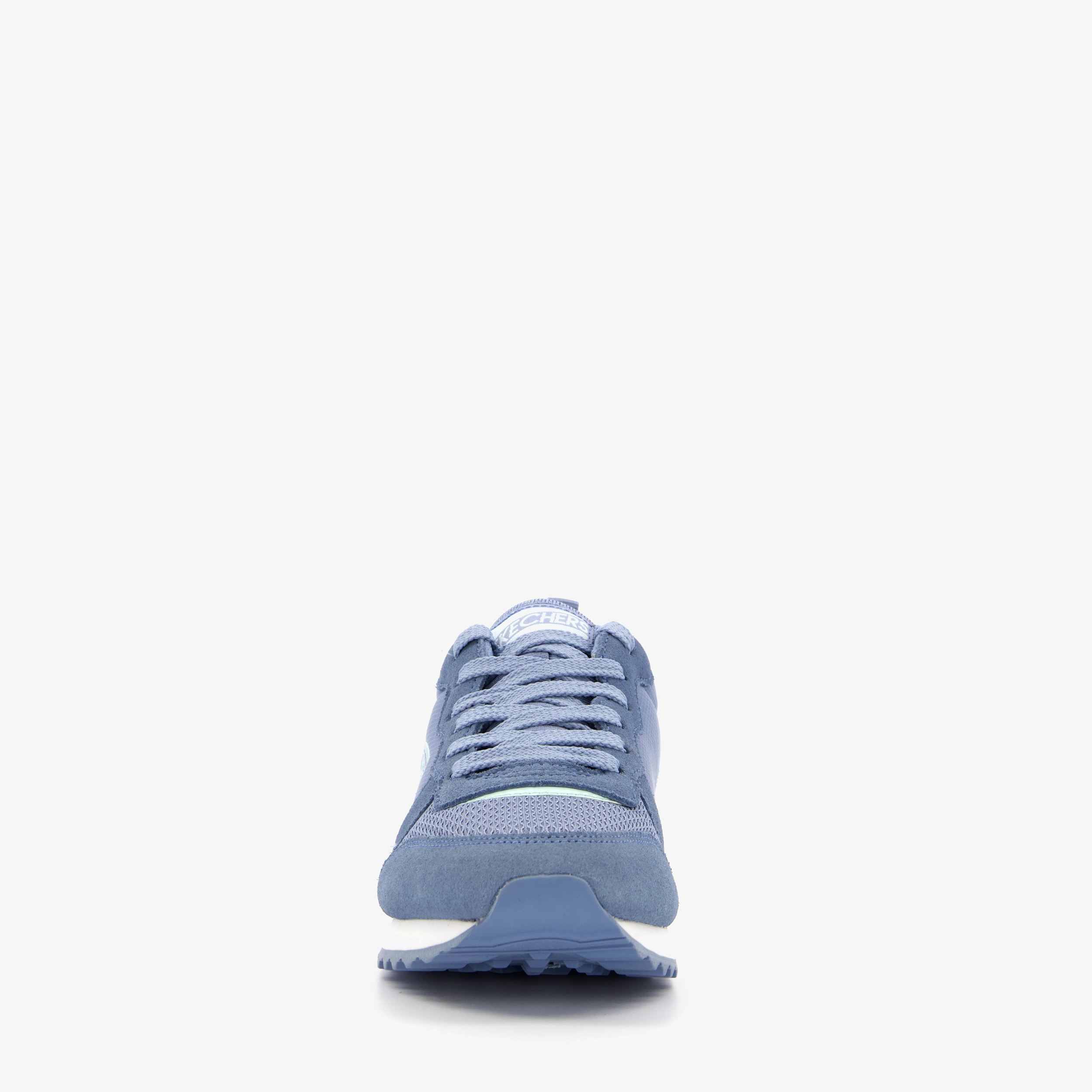 Blauwe Skechers Originals 85 Step N Fly sneakers voor dames. Gemaakt van textiel, een binnenwerk van textiel en een stevige profielzool. De sneakers hebben een vetersluiting en een aantreklusje op de hiel voor een makkelijke instap. De comfortabele binnenzool van Memory Foam zorgt samen met de rubberen buitenzool voor demping bij elke stap die je neemt. Binnenzool is niet uitneembaar.