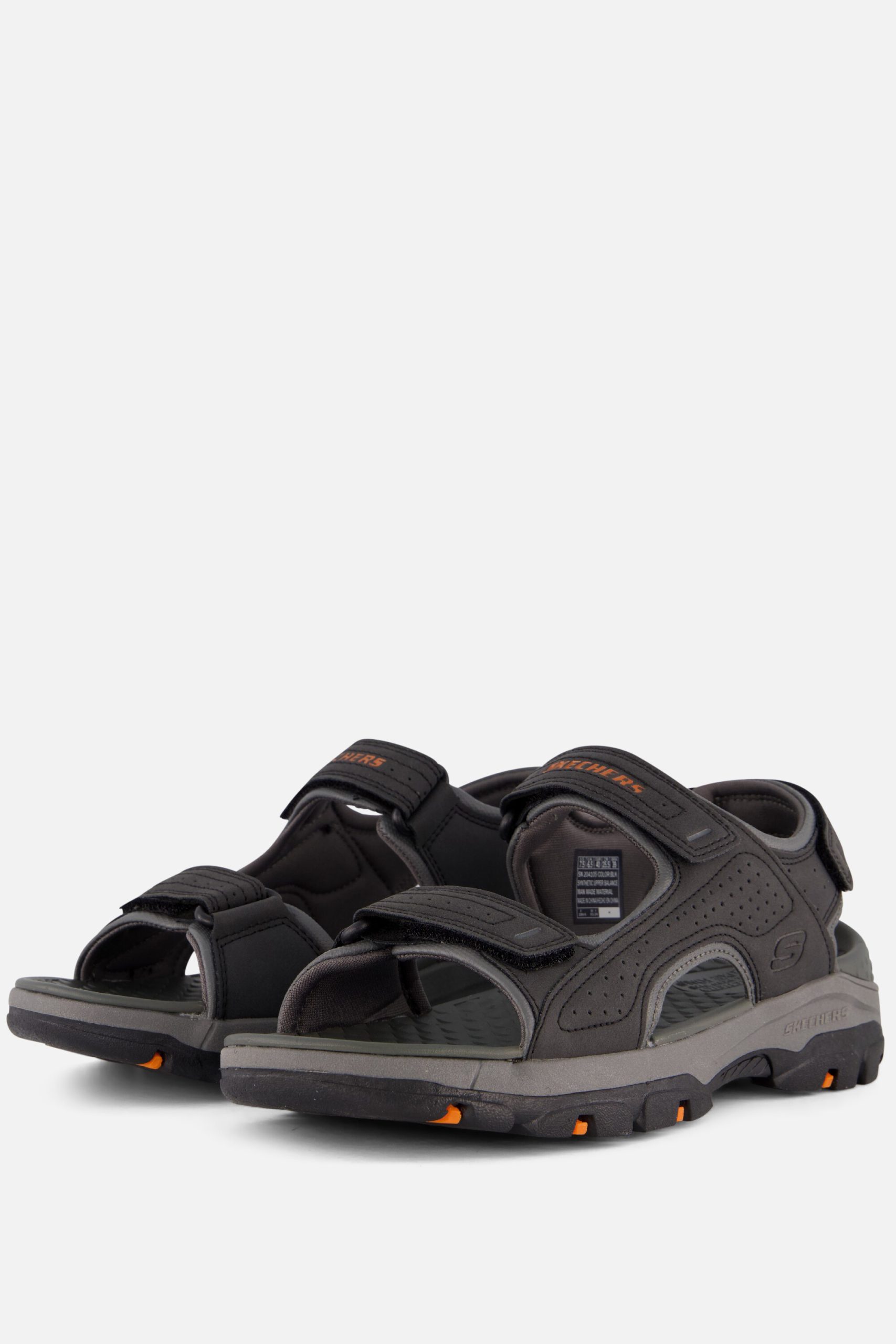 Deze Skechers Relaxed Fit Tresman Garo sandalen hebben een synthetisch bovenwerk. De voering en comfortabele binnenzool zijn ook synthetisch. De sandalen zijn vegan en hebben een ondersteunend en schokabsorberende tussenzool. De zool is gemaakt van rubber en heeft een dikte van 2 centimeter.