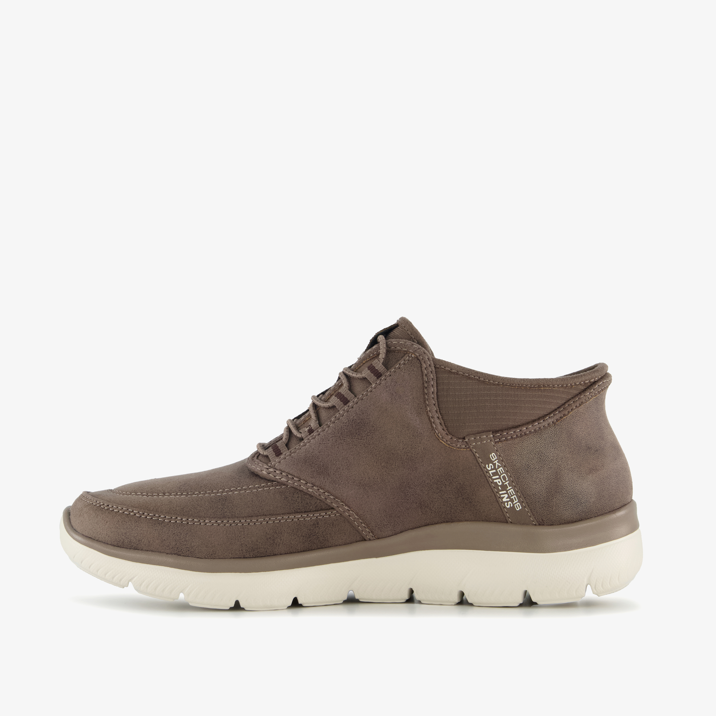 Stap moeiteloos en handfree in- en uit deze bruine Skechers Slip-ins: Summits Siegul sneakers voor heren. Het bovenwerk is gemaakt van leer, het binnenwerk van textiel en de profielzool is van rubber. De sneakers zijn volledig gevoerd en ze zijn voorzien van elastische veters en een uitneembare binnenzool vab Memory Foam. Deze biedt demping en extra comfort.
