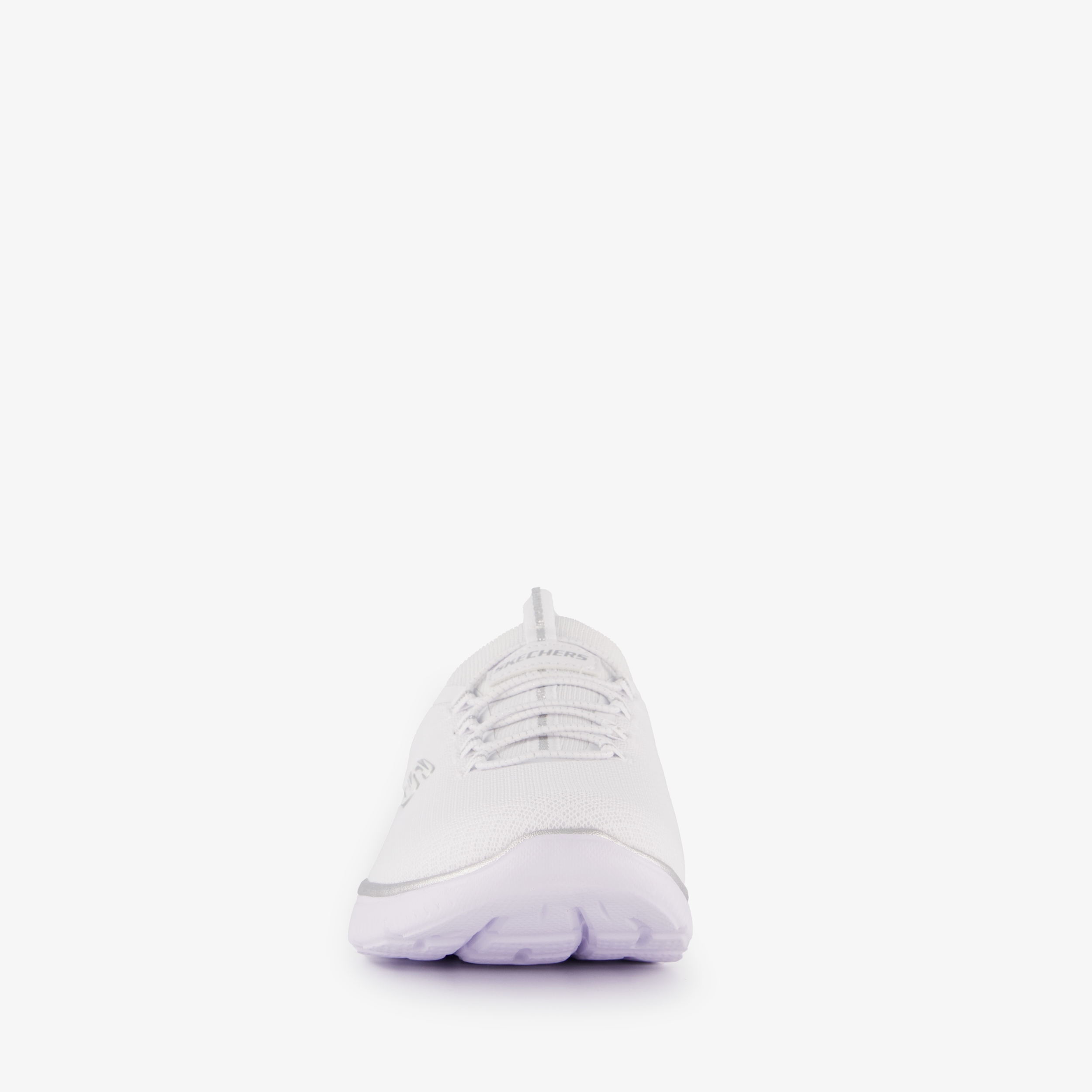 Witte Skechers Summits – Swift Step instappers voor dames. Het buitenwerk is gemaakt van mesh, het binnenwerk van textiel en de profielzool van rubber. Voorzien van elastische veters en aantreklusjes op de tong. Het vaste voetbed bevat Memory Foam wat demping en comfort biedt.