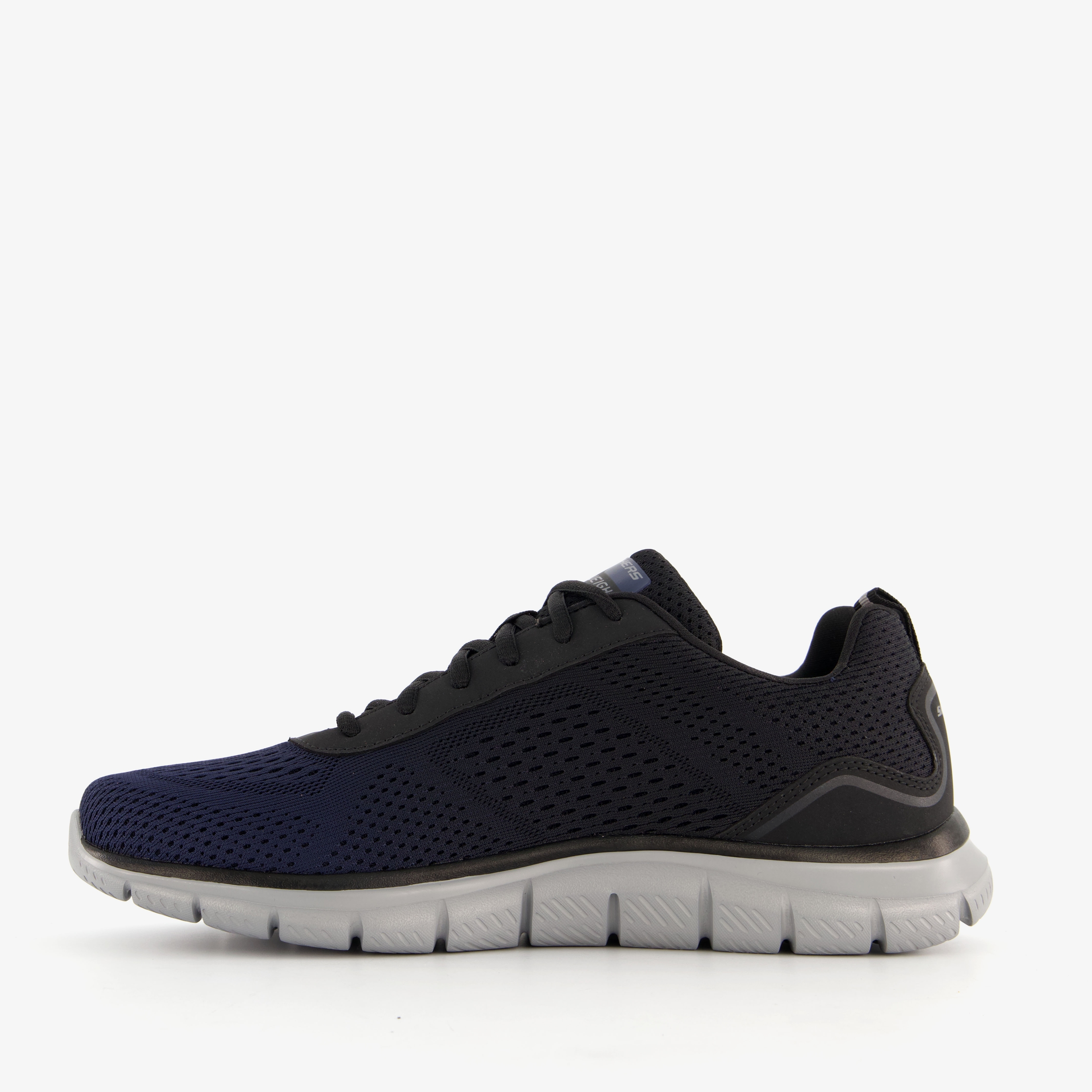 Blauwe Skechers Track Ripkent sneakers voor heren. Het ademende buitenwerk van deze lichte fitnessschoenen is gemaakt van mesh, het binnenwerk is van textiel en de profielzool is van rubber. Voorzien van een vetersluiting en een uitneembare binnenzool. Deze bevat Memory Foam wat demping en comfort biedt. De Skechers Track Ripkent sneakers hebben een gewatteerde tussenzool en een flexibele buitenzool.