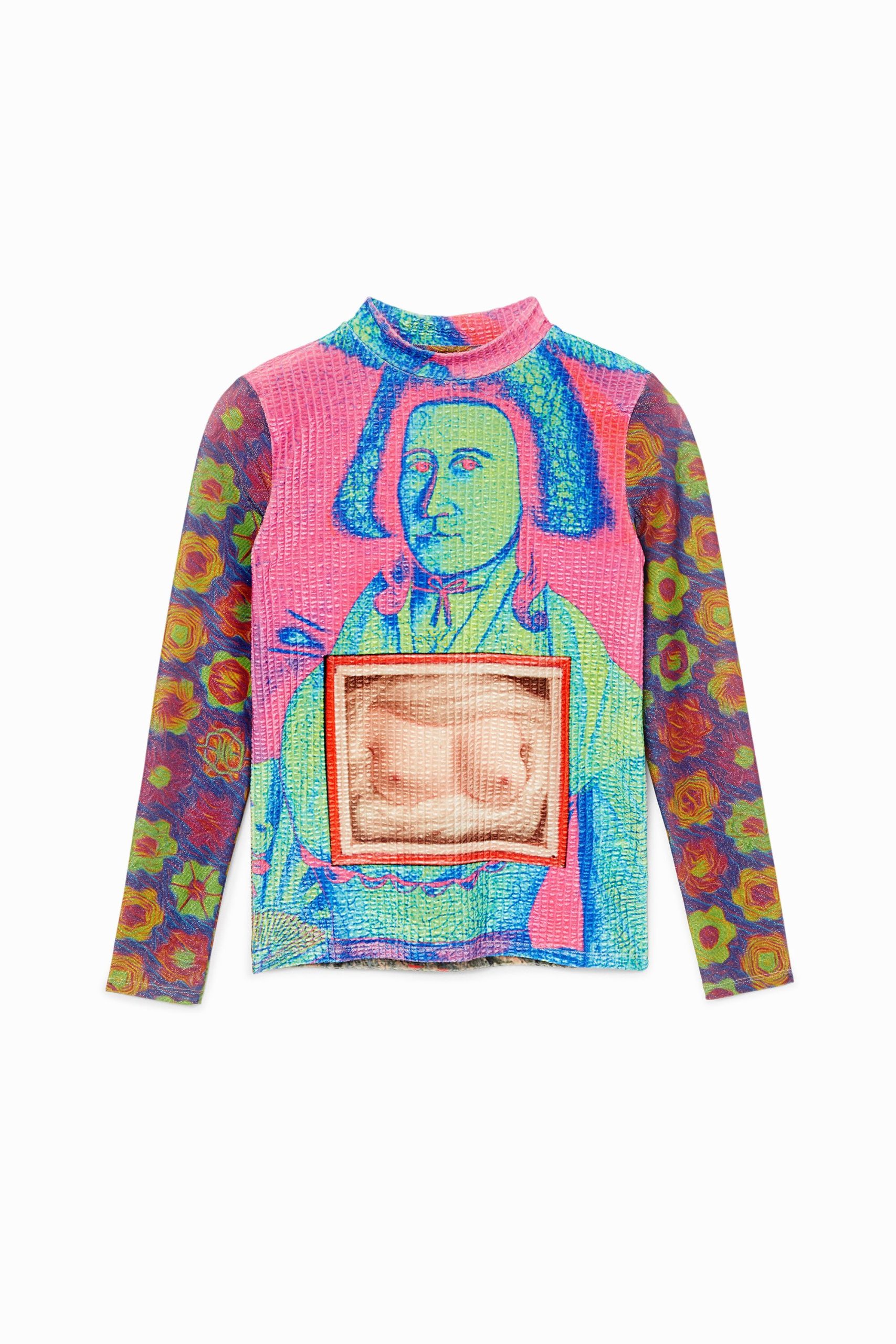 Verschillende arty referenties komen samen in de kleurrijke en grappige patch met prints van dit slim fit T-shirt van fluweelzachte stof met goudkleurig lurexgaren op de lange mouwen.