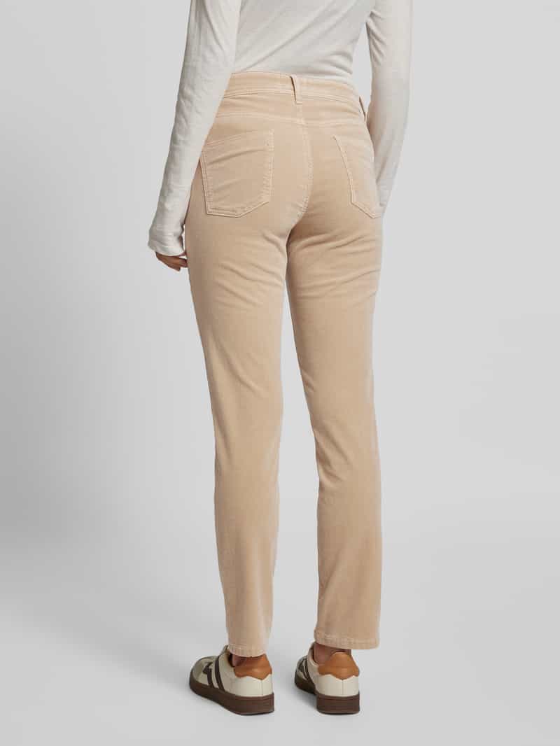 Corduroy damesbroek van Cambio;Mix van katoen en modal met stretch;Slim fit;Model ‘PIPPER’;5-pocketdesign;Knoop- en ritssluiting;Bandwijdte bij maat 36: 39 cm;Binnenbeenlengte bij maat 36: 75 cm