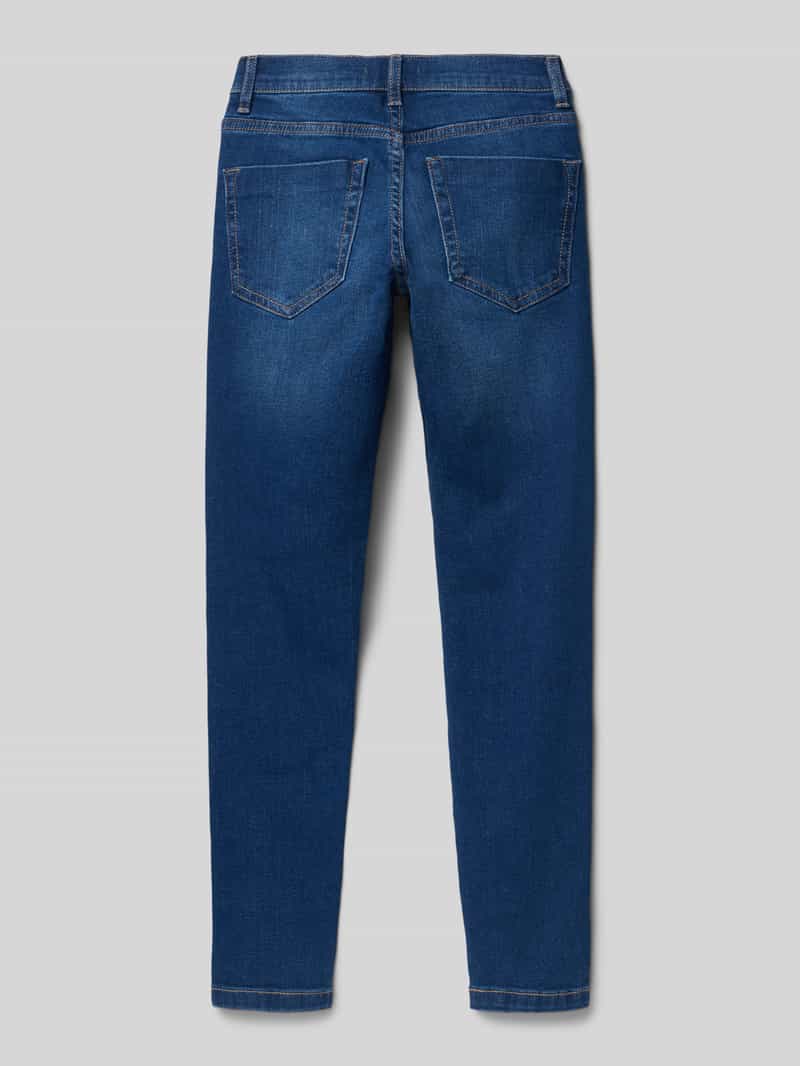 Slim fit jeans van s.Oliver Casual voor kinderen;Model ‘Suri’;Look: mêlee;Pasvorm/model: Slim fit;Applicatie: Contrastnaden, labelstuds in contrastkleur;Details: Effectgaren, riemlussen;Sluiting: Schuifhaakje en blinde ritssluiting;Band: met verstelbare breedte aan de binnenkant;Zakken: 5-pocketdesign;Materiaalverwerking: Denim;Materiaal: Mix van katoen en elastaan;Bandwijdte bij maat 140: 28 cm;Binnenbeenlengte bij maat 140: 63 cm