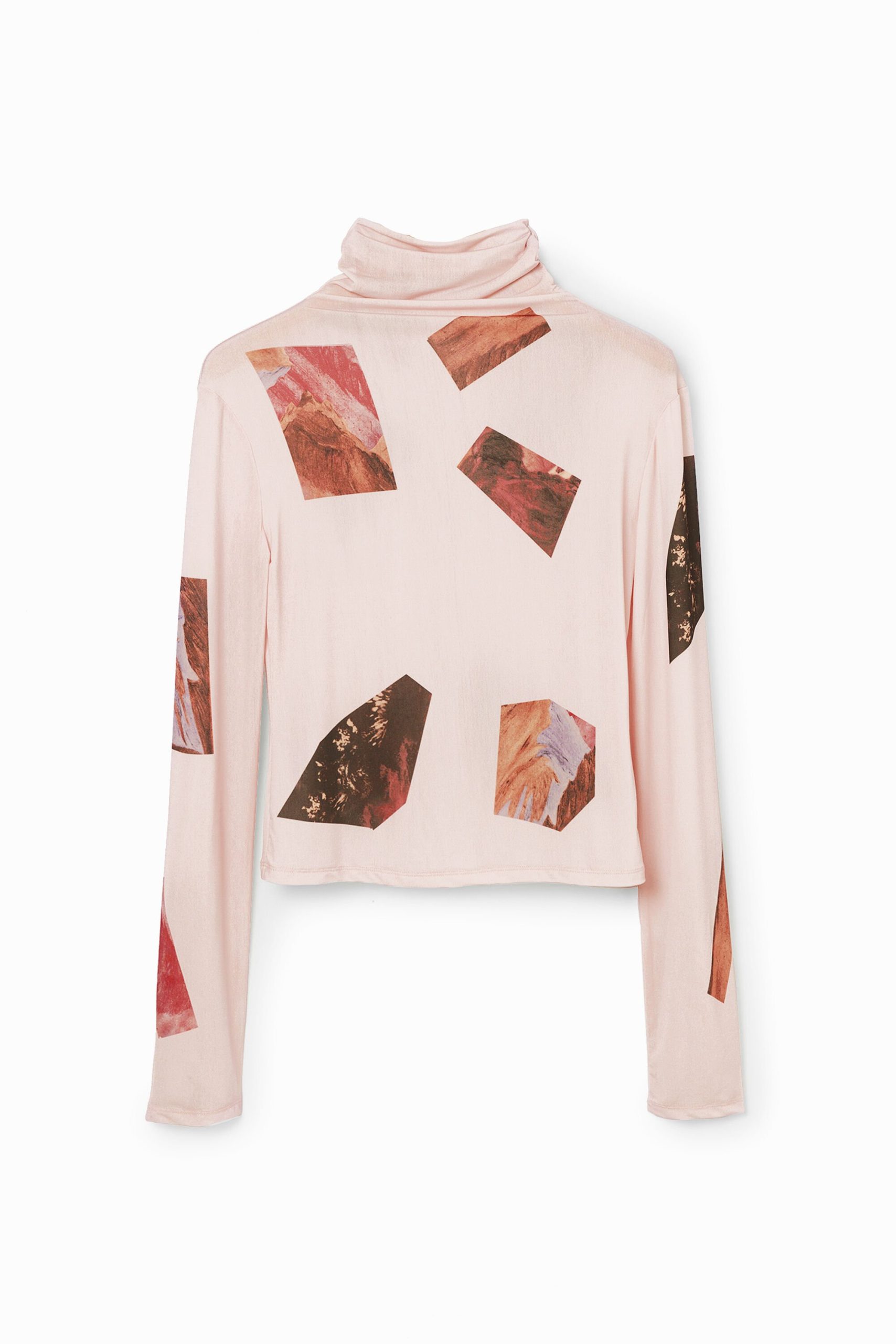 Slim fit T-shirt hoge hals collage – RED – S