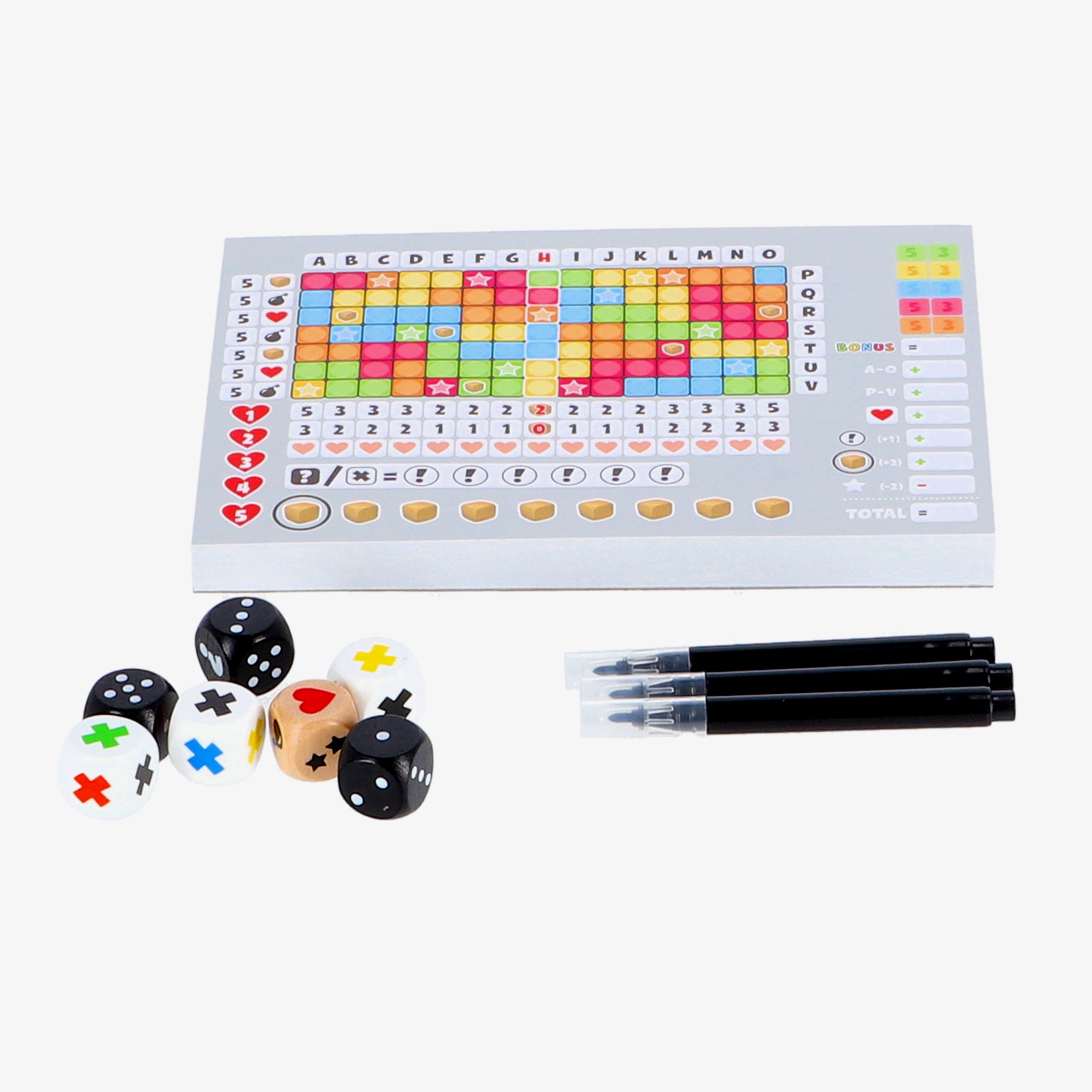 Dit is hét vervolg op het populaire en superverslavende dobbelspel! Kruis vakjes aan op je speelveld en vul zo snel mogelijk kolommen, rijen en gekleurde gebieden. Elke beurt kies je een kleur en een cijfer van de dobbelstenen. Combineer ze en kruis de aangrenzende vakjes van de gekozen kleur aan.¶Speel zo slim mogelijk en neem andere spelers hun gewenste combinatie weg. Hoe slimmer je je speelveld uitbreidt, hoe meer keuzemogelijkheden je krijgt. Wanneer een speler twee complete kleuren heeft aangekruist, eindigt het spel. ¶In dit vervolg op het spel Keer op Keer zorgen nieuwe dobbelstenen en mogelijkheden voor nieuwe uitdagingen. Nu kan een speler ook in zijn beurt kiezen om de zevende dobbelsteen te gebruiken. Met de bom kruis je bijvoorbeeld vier vakjes waar dan ook af, en het hartje zorgt voor extra punten voor een voltooide kolom. Weet jij slim genoeg te spelen?¶¶Inhoud: zeven dobbelstenen, lok met speelvelden, zes viltstiften, spelregels.¶¶Keer Op Keer 2 is geschikt voor 1-6 spelers