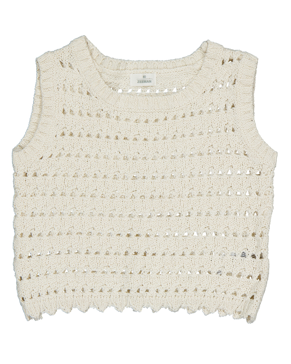 Deze witte spencer voor baby's heeft een opengewerkt patroon en is geschikt voor jongens en meisjes. De stof bestaat uit 70% katoen en 30% polyester, waardoor de spencer comfortabel draagt en makkelijk te onderhouden is.
