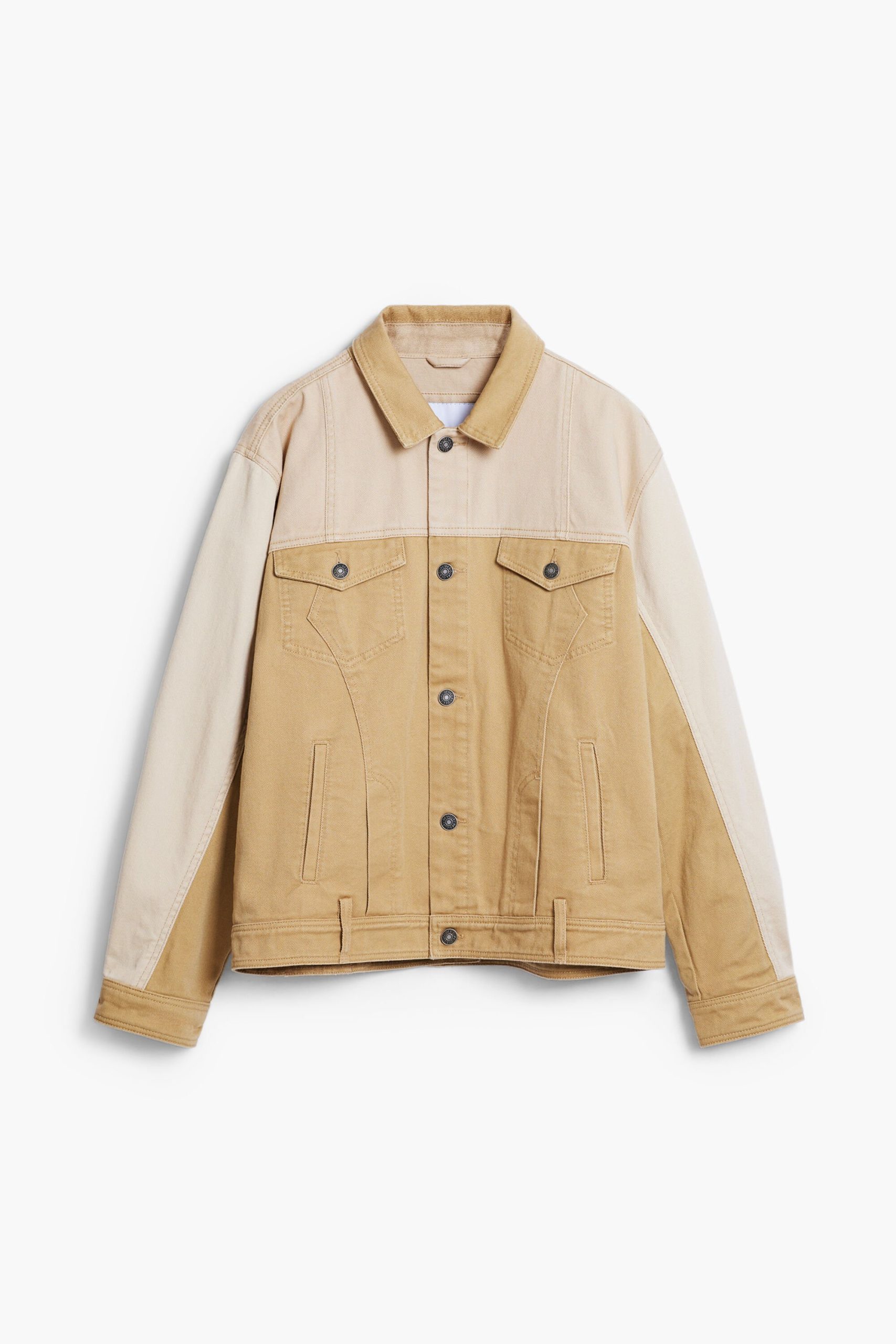 Spijkerjack met kleurcontrast-effect, in twee tinten, met sluitdetails en broekband-effect aan de achterkant onderaan.