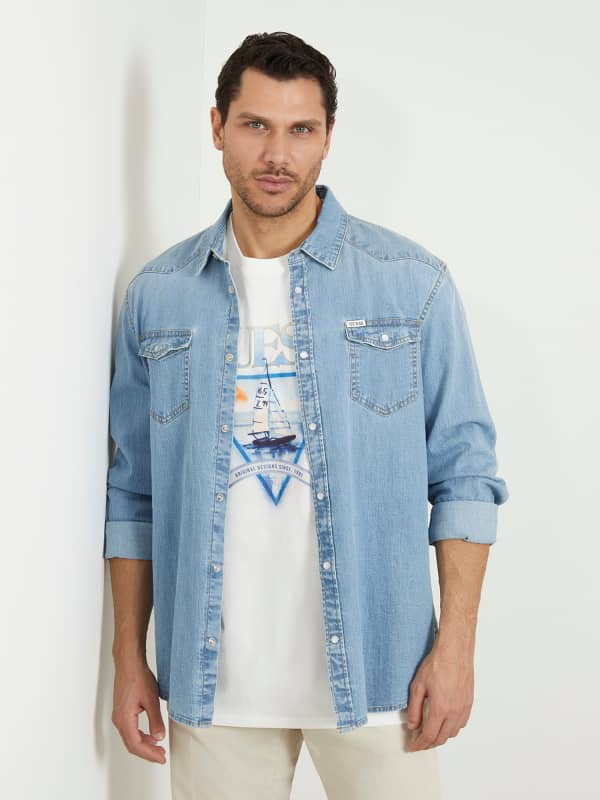 Spijkeroverhemd van katoenmix.Lange mouwen.Pasvorm slim.Knoopsluiting.STOFTYPE: Stugge denim.BEHANDELING: Light wash.VERSIERING: zakken met drukknoopsluiting. Op de afbeelding is maat M te zien.Totale lengte: 78 cm / 30.71 inch.Lengte mouwen: 66 cm / 25.98 inch.Valt normaal.