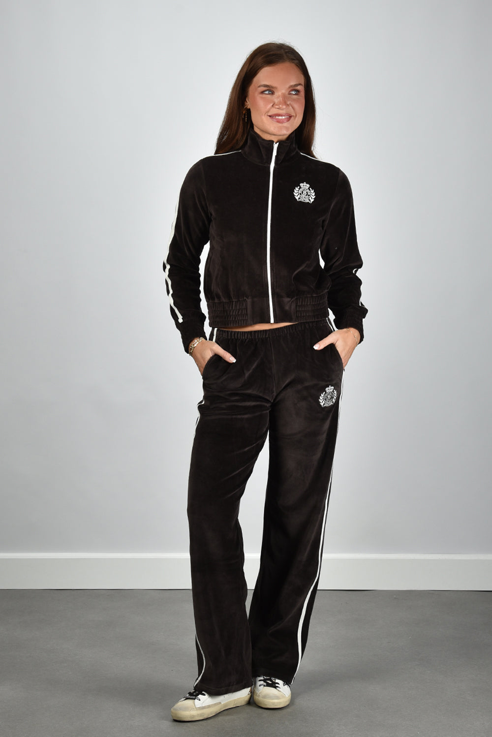Koop Sporty & Rich broek NY Crest Velour PA02265243BR03 chocolate bij Marjon Snieders voor 230.00