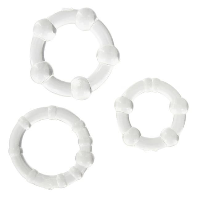 De Stay Hard Cock Rings Set is jouw weg naar verhoogd plezier en opwindende momenten. Deze verleidelijke set van drie ringen is ontworpen om je intieme ervaringen naar een hoger niveau van voldoening te tillen. Door de juiste druk uit te oefenen, helpen deze ringen bij het langer behouden van een erectie en het uitstellen van de zaadlozing, zodat je samen met je partner langer kunt genieten. Gemaakt van extra rekbaar siliconen, bieden deze geribbelde ringen de perfecte combinatie van flexibiliteit en ondersteuning. De set bevat drie ringen in verschillende maten, zodat je altijd een comfortabele en veilige pasvorm hebt, ongeacht je voorkeur. Ervaar de prikkelende sensatie van de beaded textuur terwijl je de Stay Hard Cock Rings draagt. De strategisch geplaatste kralen zorgen voor een heerlijke stimulatie, waardoor je genot wordt versterkt en jij en je partner een intensere en langdurigere ervaring beleven. Voor een soepelere en prettigere ervaring raden we aan om deze cock rings te gebruiken met een glijmiddel op waterbasis. Dit zorgt voor moeiteloze glijding en extra comfort.