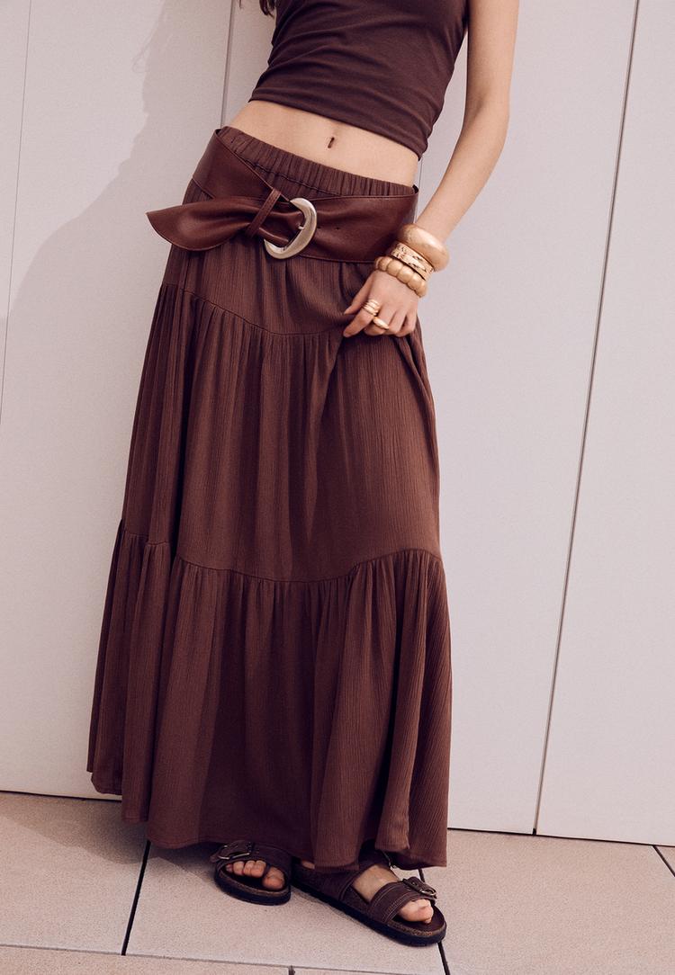 Soepelvallende midi-rok met elastische tailleband. Gecombineerde voering aan de binnenkant in dezelfde kleur. Verkrijgbaar in verschillende kleuren.