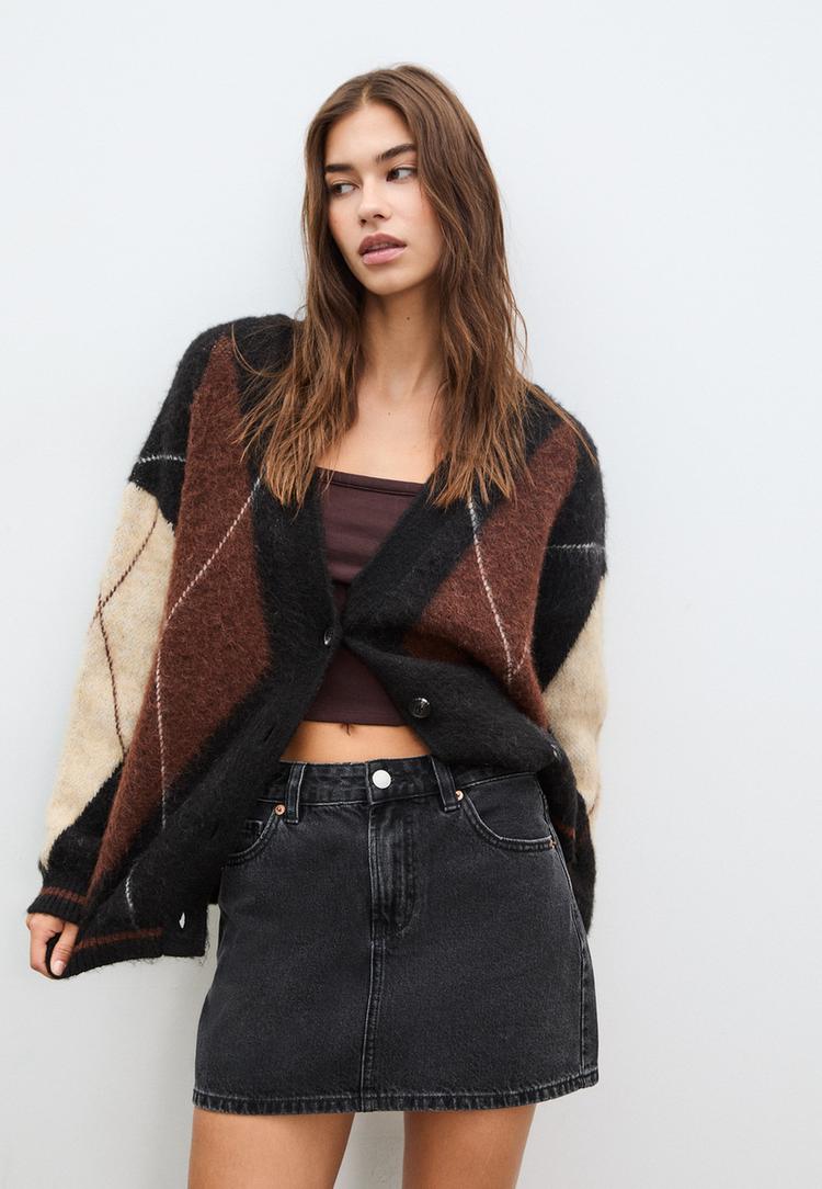 Stradivarius D60 Falda mini denim ZWART EFFECT DENIM WASSING 36
