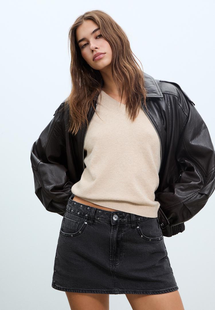 Stradivarius D62 Falda pantalón denim studs ZWART EFFECT DENIM WASSING 42
