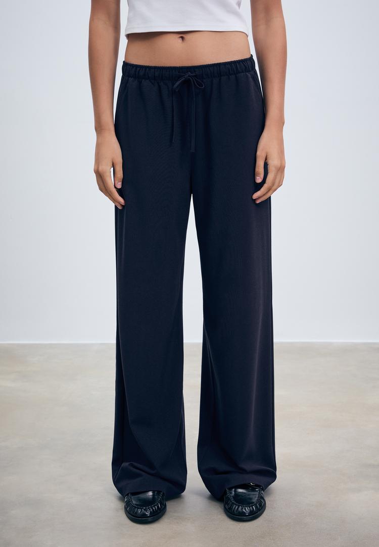 Stradivarius Lange, soepelvallende geklede broek Donkermarine S
