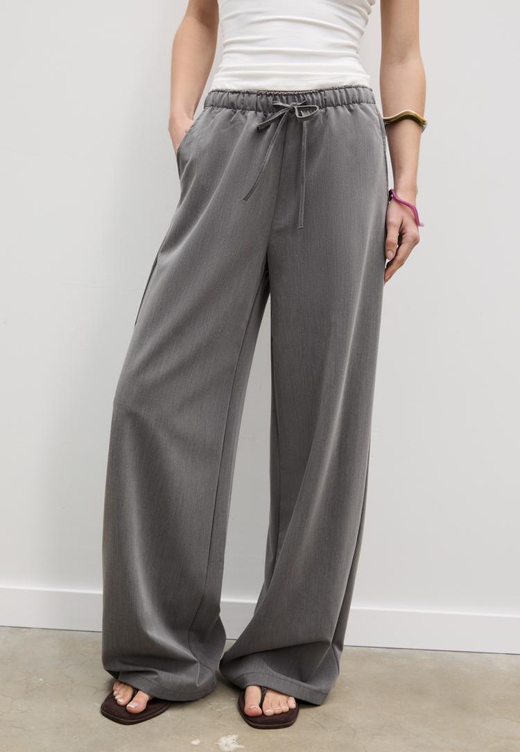 Stradivarius Lange, soepelvallende geklede broek Grijs melange XL