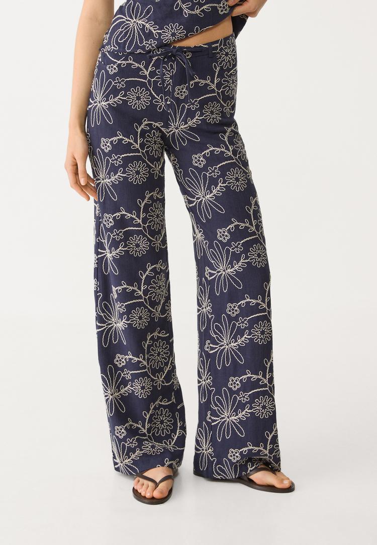 Stradivarius Straight geborduurde broek met linnen Marineblauw 38