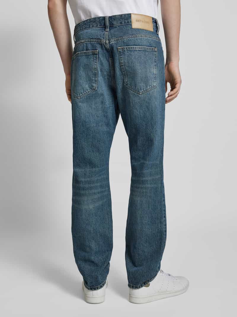 Herenjeans van Only & Sons;Mix van katoen en gewaxt katoen;Rechte pijpen;Model ‘EDGE’;Riemlussen;5-pocketdesign;Bandwijdte bij maat 32/32: 42 cm;Binnenbeenlengte bij maat 32/32: 77 cm