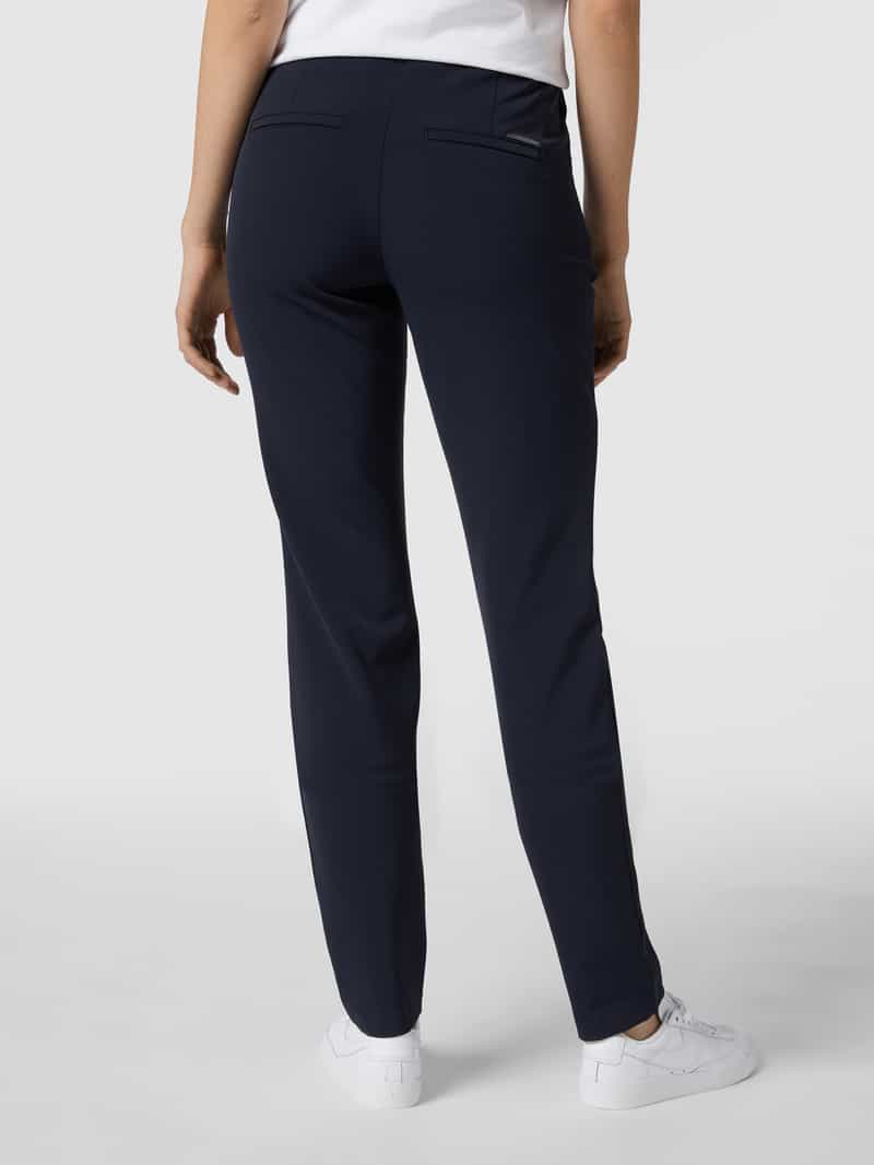Stretchbroek voor dames van MAC;Stevige jersey;Elastische band;Smalle pijp;Knoop- en ritssluiting;Steekzakken met naadritssluiting;Sierpaspels aan de achterkant;Vastgezette persplooien;Binnenbeenlengte bij maat 36/28: 73 cm