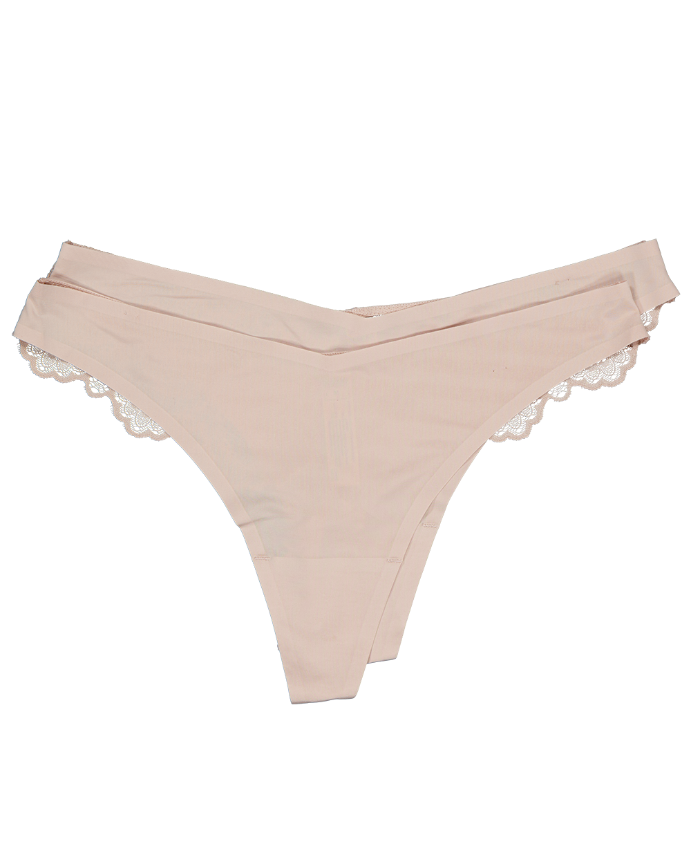 Deze naadloze string in de kleur roze is gemaakt van polyester en elastaan, met een katoenen voering voor extra comfort. De randen zijn afgewerkt met kant van polyamide en elastaan. Je ontvangt twee strings die dankzij de soepele materialen zeer comfortabel zitten.