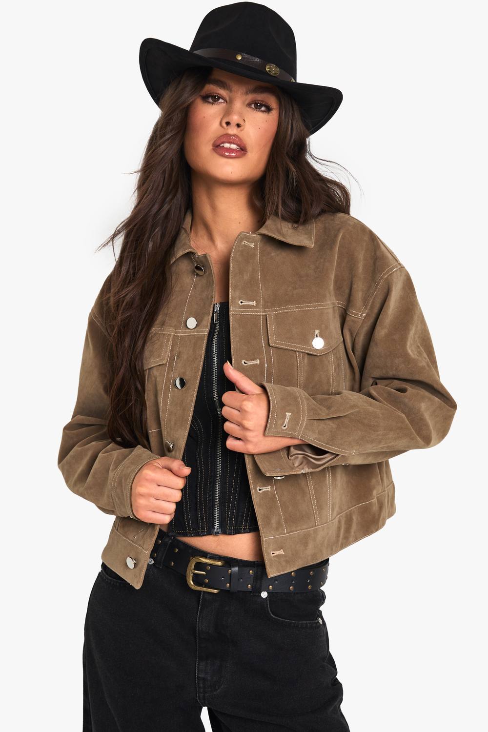 Home » Dames » Jassen » Leren & jassen » Suède-Look Jas Met Contrasterende Stiksels, Taupe