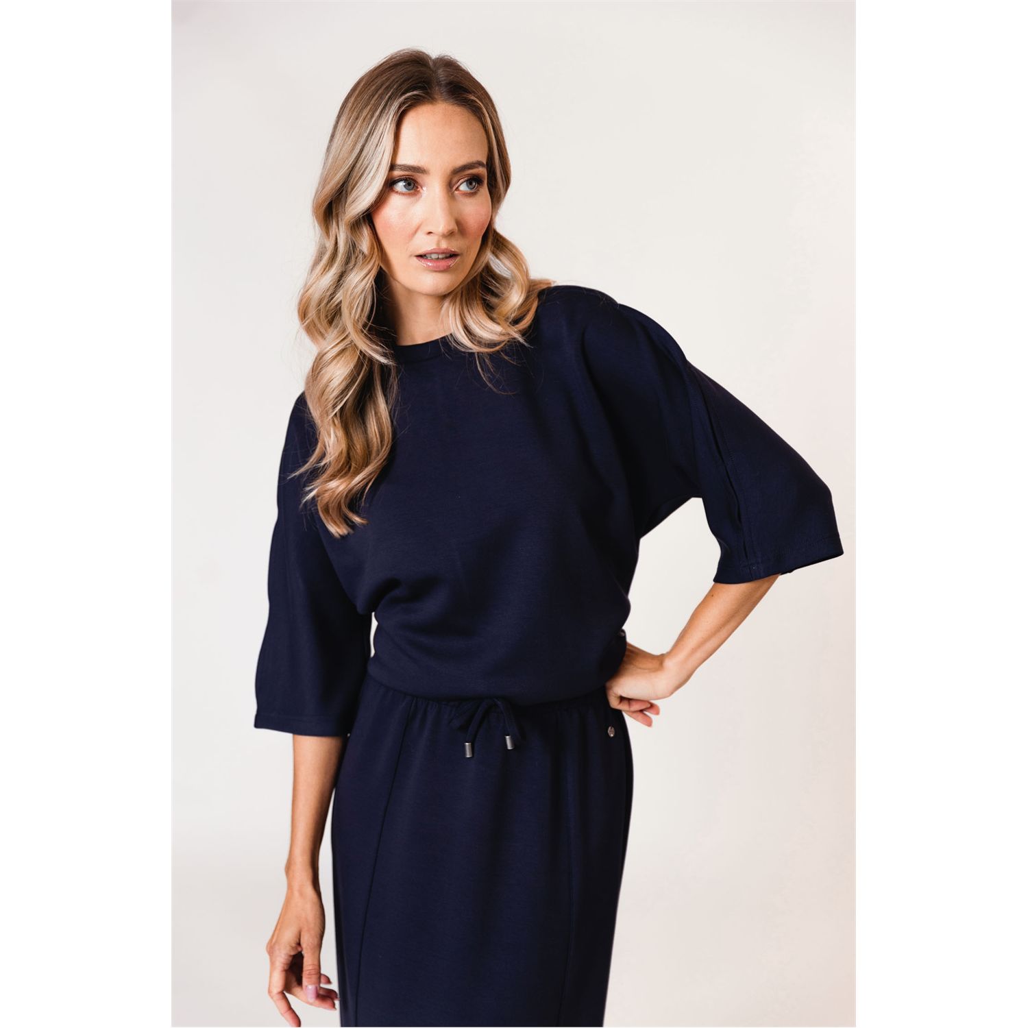 Dit korte mouw sweatshirt heeft een losvallende, relaxte fit met aangeknipte korte mouwen en een ronde hals. Combineer het met onze bijpassende rok voor een complete look.