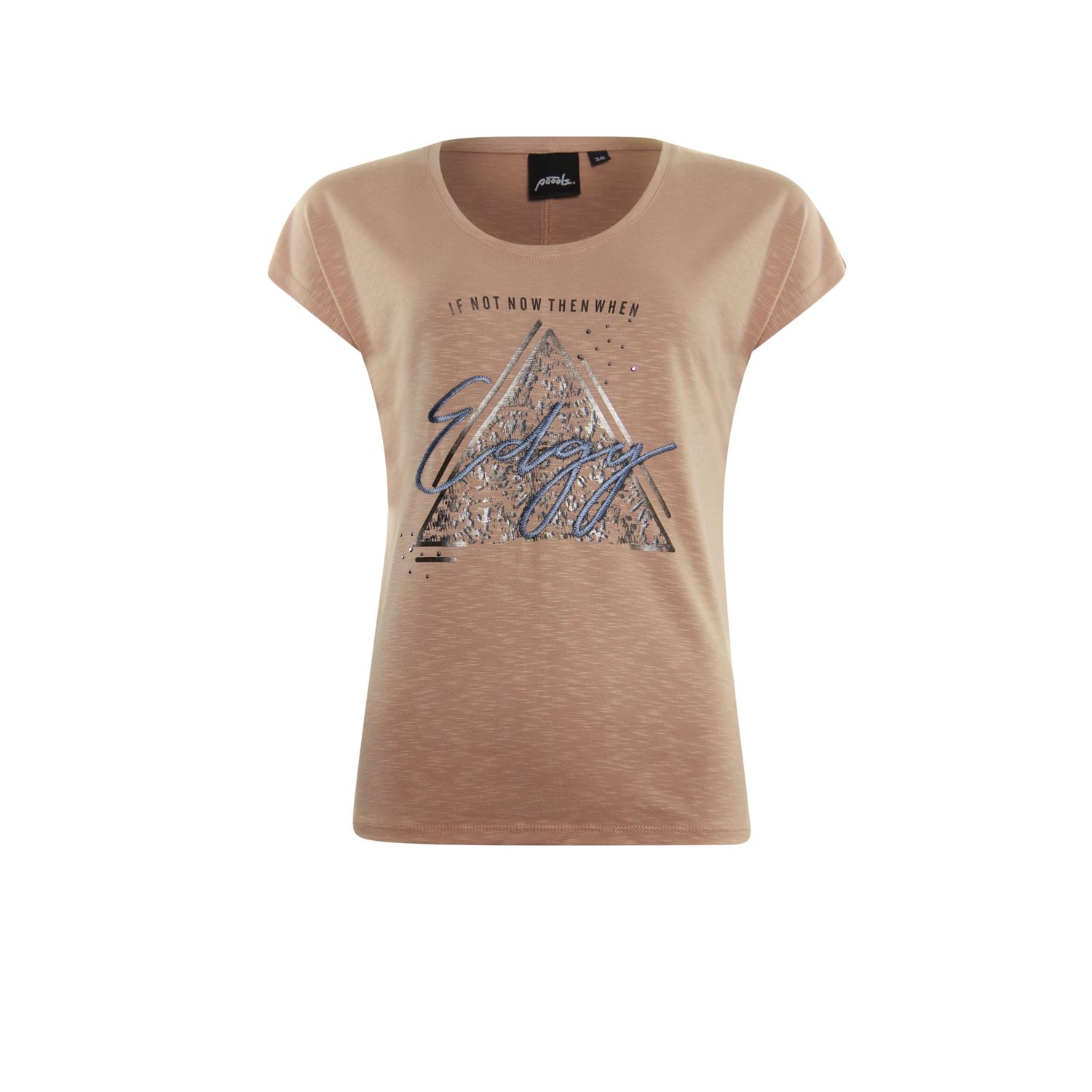 T-shirt in cotton/visvose jersey. Voorzijde voorzien van opdruk met geborduurde details.