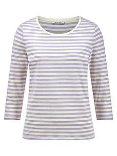 T-shirt met ronde hals van PETER HAHN met driekwartmouwen. Nieuwe kleuren, topkwaliteit Een shirt in de nieuwste pasteltrend met een gebreid strependessin en een subtiel glittereffect dankzij metallic garen. 84% katoen, 12% polyester (gemetalliseerd), 4% elastaan. Lengte ca. 62 cm. Dit T-shirt met ronde hals is machinewasbaar. fijnwas tot 30°. chloorbleken niet mogelijk. koud strijken. chemische reiniging, veilig. drogen in de droger niet mogelijk. 36, 38, 40, 42, 44, 46, 48, 50, 52