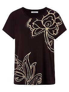 T-shirt met ronde hals van PETER HAHN met verlaagde schouders. Gemaakt van levendige jersey (95% viscose, 5% elastaan) met een grote bloemenprint op de voorkant. Lengte ca. 62 cm. Dit T-shirt met ronde hals is machinewasbaar. fijnwas tot 30°. chloorbleken niet mogelijk. koud strijken. chemische reiniging, veilig. drogen in de droger niet mogelijk. 36, 38, 40, 42, 44, 46, 48, 50, 52