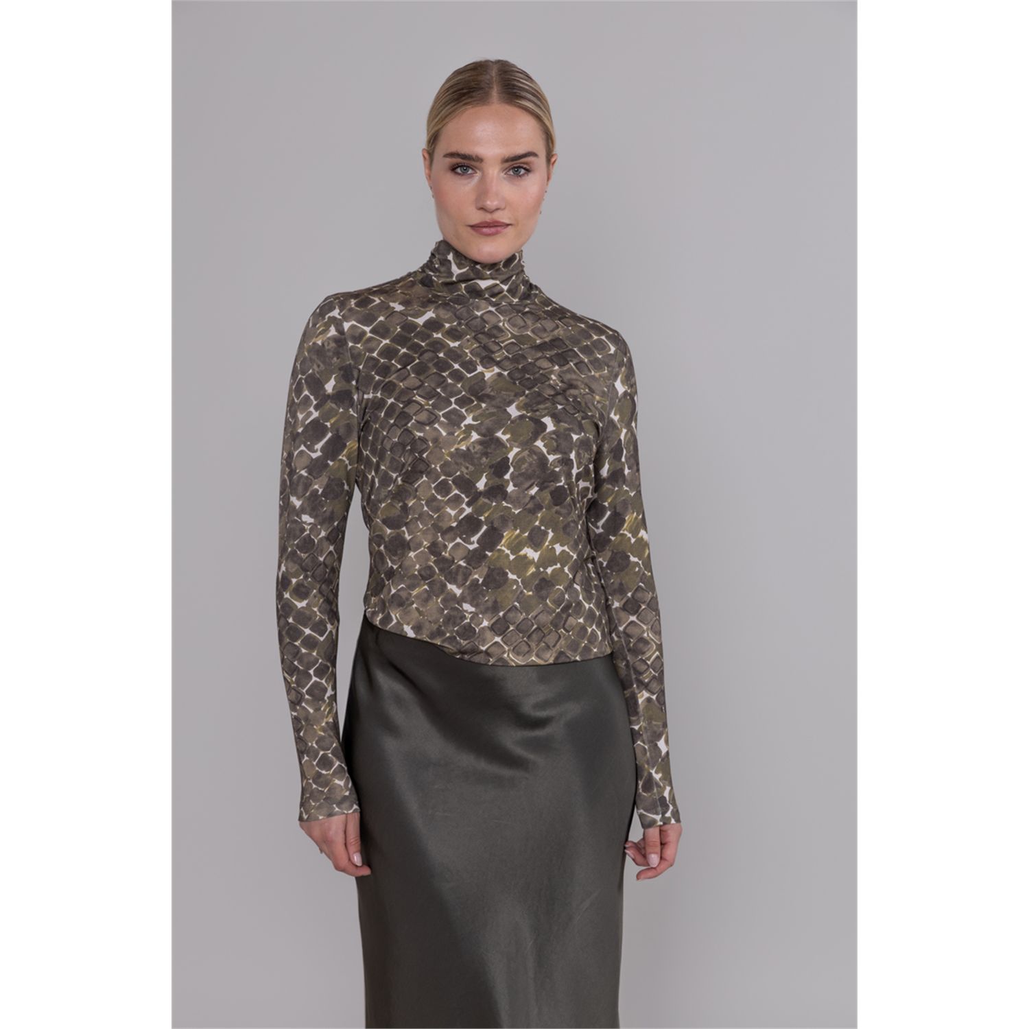 Geprint T-shirt met turtle neck en lange mouw, in viscose elasthan jersey