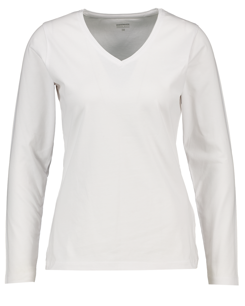 Dit witte dames T-shirt heeft lange mouwen en een V-hals. De stof bestaat uit 95% katoen en 5% elastaan, waardoor het shirt zacht aanvoelt en licht meerekt. Dit zorgt voor een comfortabele pasvorm die goed aansluit. Door de effen kleur is het T-shirt makkelijk te combineren met andere kleding..