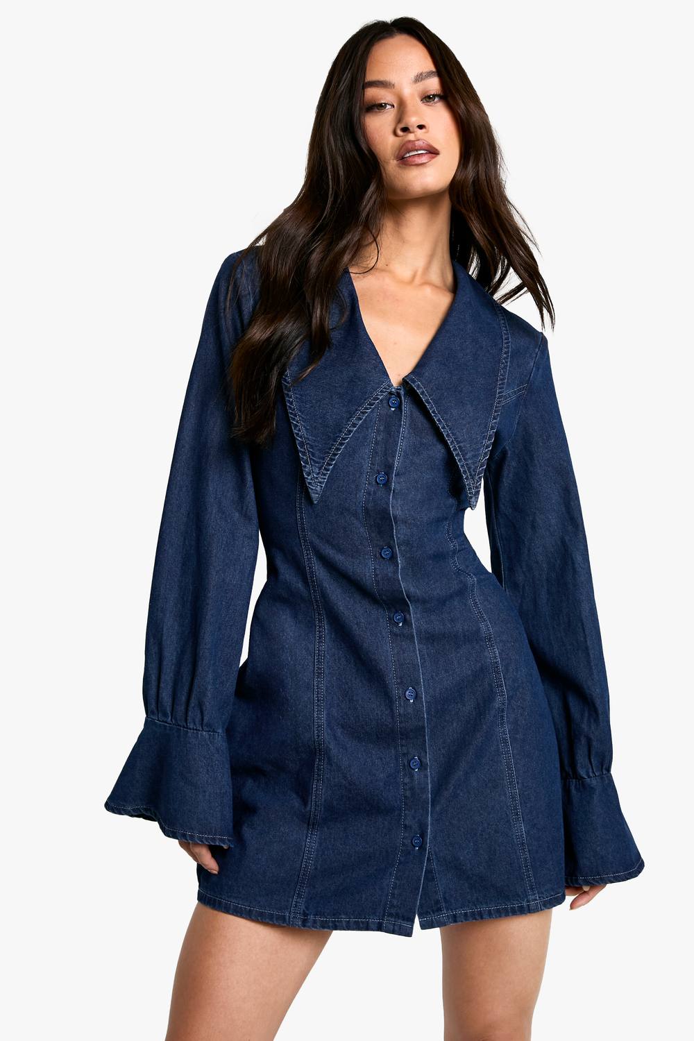 Opvallend oversized kraagdetail voor een gedurfde uitstraling Knopen aan de voorkant voor gemakkelijk dragen Lange mouwen met dramatisch uitlopende manchetten Nauwsluitend etuikleed-silhouet Veelzijdige denimstof die geschikt is voor diverse gelegenheden Maak een modieus statement met deze in het oog springende hoge etuikleed-jurk. Het oversized kraagdetail trekt de aandacht, terwijl de knopen aan de voorkant een vleugje klassieke charme toevoegen. De lange mouwen met uitlopende manchetten zorgen voor een dramatisch silhouet, perfect voor wie graag opvalt. Deze jurk combineert moeiteloos casual comfort met chique stijl, waardoor hij ideaal is voor diverse gelegenheden. Combineer hem met kniehoge laarzen en een gestructureerde handtas voor een trendy look overdag, of maak hem feestelijker met sandalen met bandjes en opvallende sieraden voor avondgelegenheden. De veelzijdige denimstof zorgt ervoor dat dit stuk een favoriet wordt in je garderobe, geschikt voor familiebrunches, casual kantoordagen of weekenduitstapjes met vrienden. Omarm je innerlijke fashionista en trek overal de aandacht met deze unieke en stijlvolle jurk. boohoo Dames Tall Collar Detail Denim Shift Dress | Blue | Maat: 34