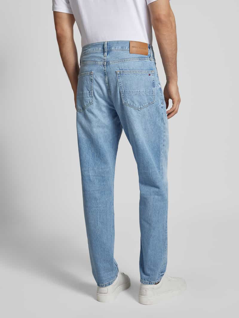Tapered fit herenjeans van Tommy Hilfiger Sportswear;Look: mêlee;Pasvorm: Relaxed fit ;Pasvorm volgens fabrikant: Relaxed tapered leg;Bandhoogte: Mid rise;Lengte: Regular;Applicatie: Logopatch, labelpatch, labelstitching;Details: Riemlussen;Sluiting: Knoop en blinde ritssluiting;Zakken: 5-pocketdesign;Materiaalverwerking: Denim;Materiaal: puur katoen;Bandwijdte bij maat 32/32: 43 cm;Binnenbeenlengte bij maat 32/32: 77 cm