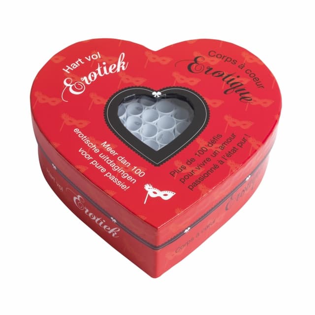 Trek zonder gebruik te maken van je handen het slipje van je partner uit. Vertel één van je stoutste fantasieën. Doe eerst iets teders, daarna iets intiems en uiteindelijk iets vurigs bij je partner. Waar zal dit toe leiden..? ‘Hart vol erotiek’ is een zinnenprikkelend spel voor jou en je partner. Jij of je partner neemt met het pincet een rolletje uit het hart. Wat gaat er met jullie gebeuren? Wordt het een speelse verleiding, een inleidend voorspel, een fantasie om te delen of een erotische uitdaging? Het spel is niet te vergelijken met enig ander spel. Er zit geen tijdslimiet aan, er zijn alleen winnaars. Op een humorvolle manier zal dit spel de intimiteit binnen de relatie vergroten. Sommige opdrachten kunnen direct worden uitgevoerd, maar het huren van een erotische film of het voorbereiden van een spannende verrassing zal op een later moment voor een heerlijk samenzijn zorgen.  Kortom: Een spel om veel intieme momenten samen te beleven!